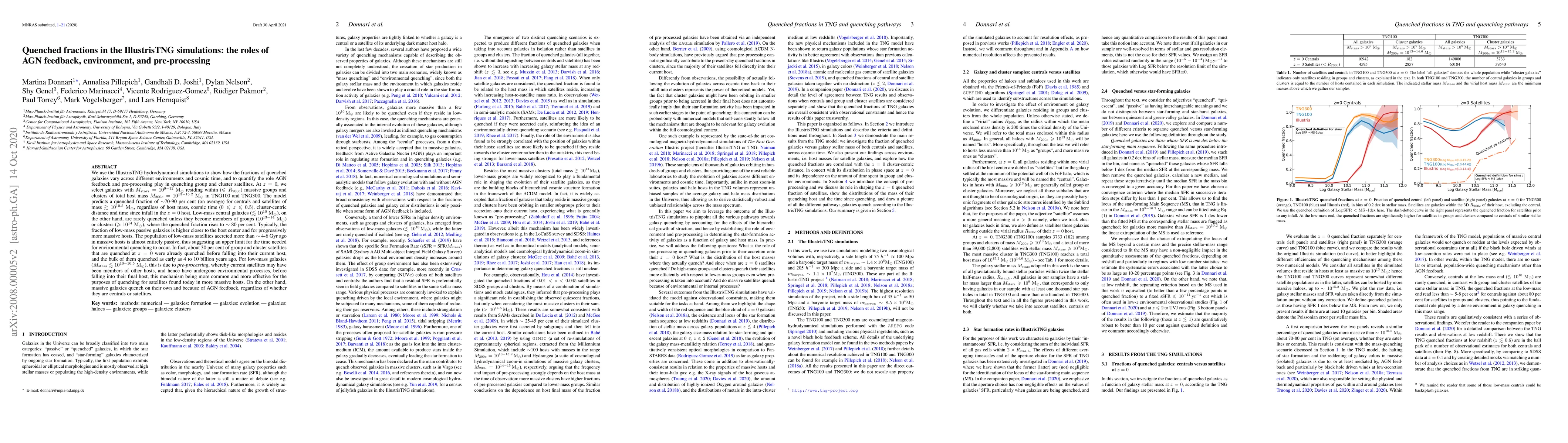 This paper examines the quenched fractions of galaxies in the IllustrisTNG simulations, highlighting the roles of AGN feedback and environmental preprocessing. It finds that low-mass galaxies are predominantly quenched in massive groups and clusters due to preprocessing, while massive galaxies quench primarily through AGN feedback.