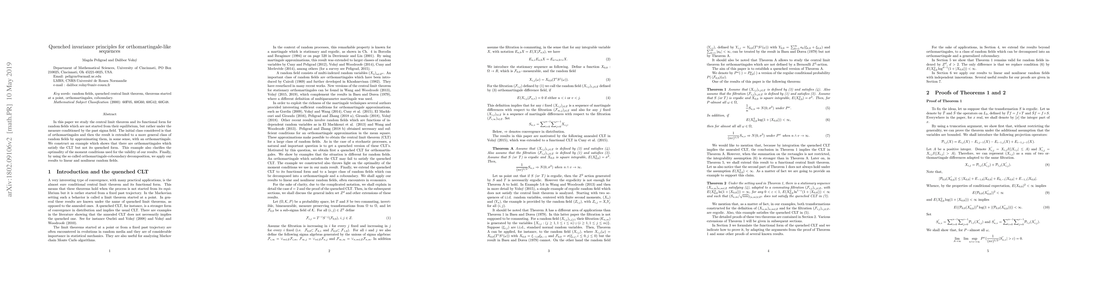 This paper investigates the quenched invariance principle for orthomartingale-like sequences, focusing on the central limit theorem for random fields not at equilibrium but conditioned by past sigma fields. It extends the results to broader random fields by approximating them with orthomartingales and demonstrates the optimality of moment conditions through a specific example.
