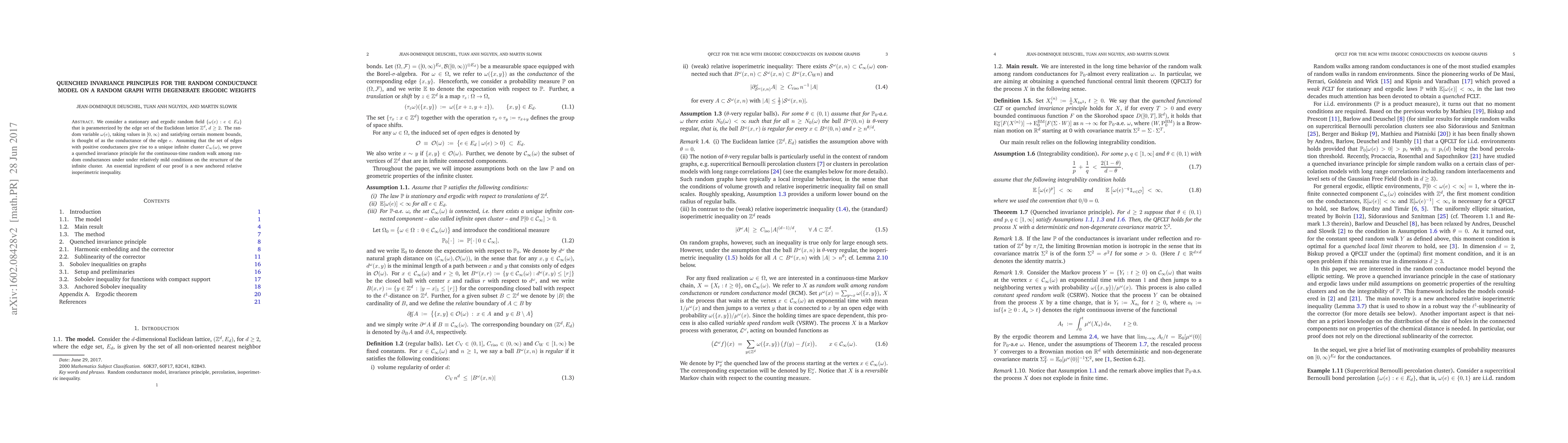 We consider a stationary and ergodic random field $\{\omega(e) : e \in E_d\}$ that is parameterized by the edge set of the Euclidean lattice $\mathbb{Z}^d$, $d \geq 2$. The random variable $\omega(e)$, taking values in $[0, \infty)$ and satisfying certain moment bounds, is thought of as the conductance of the edge $e$. Assuming that the set of edges with positive conductances give rise to a unique infinite cluster $\mathcal{C}_{\infty}(\omega)$, we prove a quenched invariance principle for the continuous-time random walk among random conductances under relatively mild conditions on the structure of the infinite cluster. An essential ingredient of our proof is a new anchored relative isoperimetric inequality.