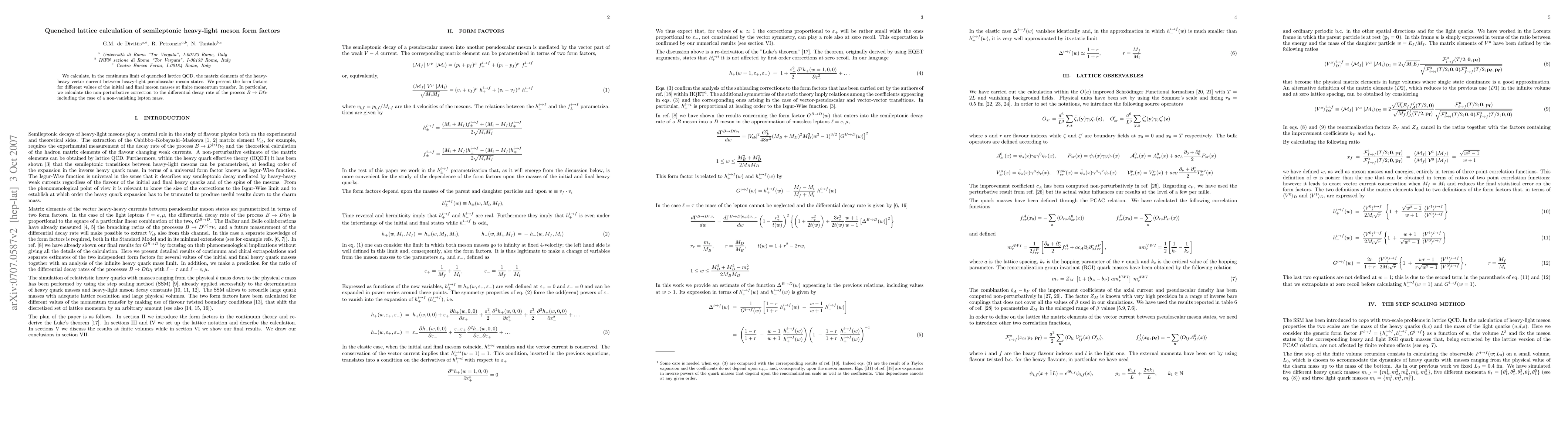 We calculate, in the continuum limit of quenched lattice QCD, the matrix elements of the heavy-heavy vector current between heavy-light pseudoscalar meson states. We present the form factors for different values of the initial and final meson masses at finite momentum transfer. In particular, we calculate the non-perturbative correction to the differential decay rate of the process B --> D l nu including the case of a non-vanishing lepton mass.
