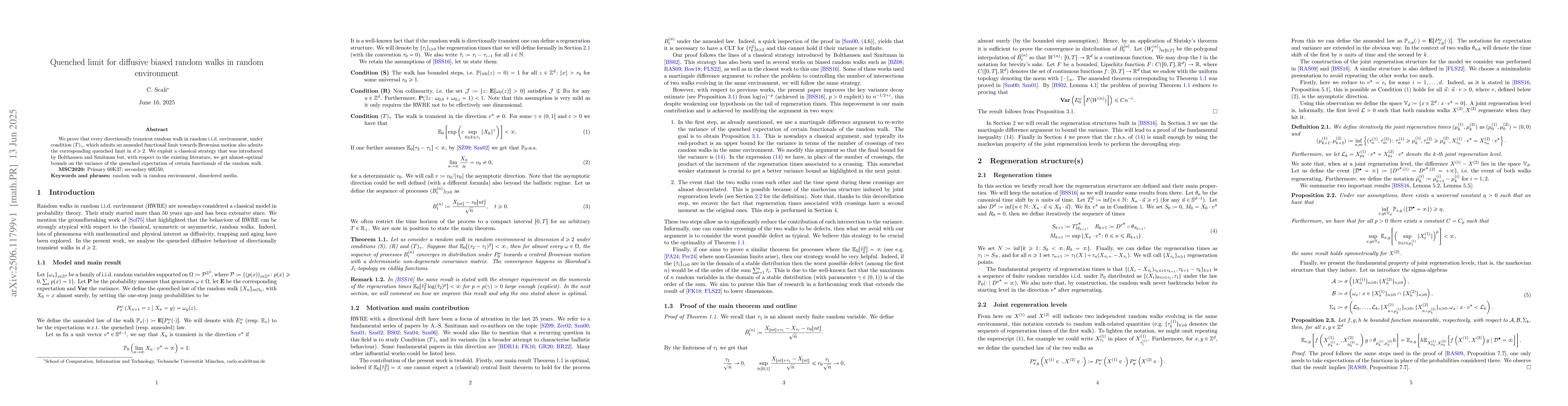 We prove that every directionally transient random walk in random i.i.d.\ environment, under condition $(T)_{\gamma}$, which admits an annealed functional limit towards Brownian motion also admits the corresponding quenched limit in $d \ge 2$. We exploit a classical strategy that was introduced by Bolthausen and Sznitman but, with respect to the existing literature, we get almost-optimal bounds on the variance of the quenched expectation of certain functionals of the random walk.