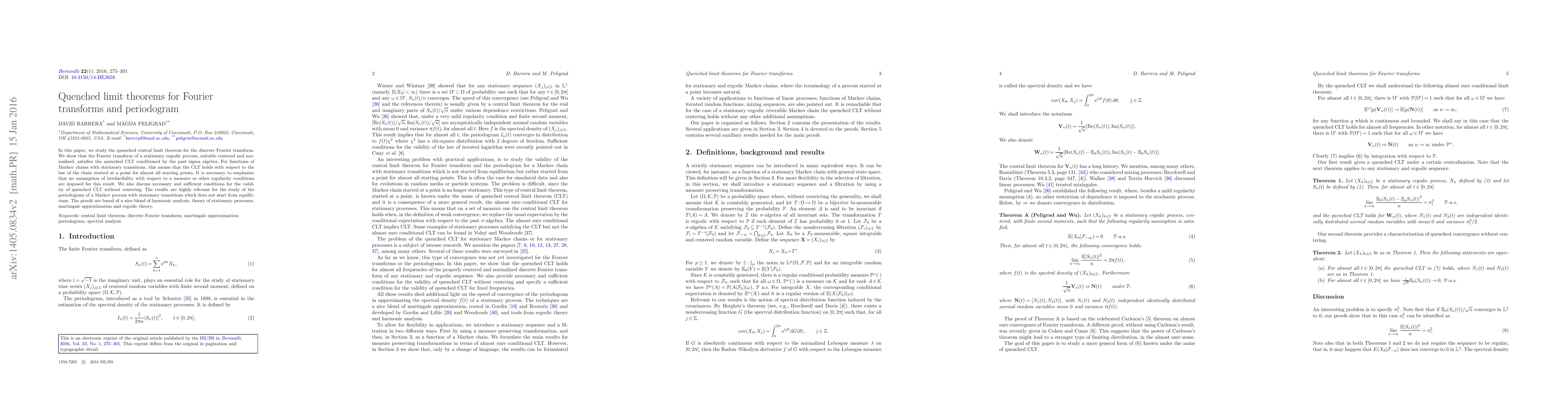 This paper establishes the quenched central limit theorem (CLT) for the Fourier transform of a stationary ergodic process, demonstrating that the CLT holds for Markov chains with stationary transitions without requiring irreducibility or regularity conditions. The results are significant for analyzing the periodogram of non-equilibrium Markov processes.
