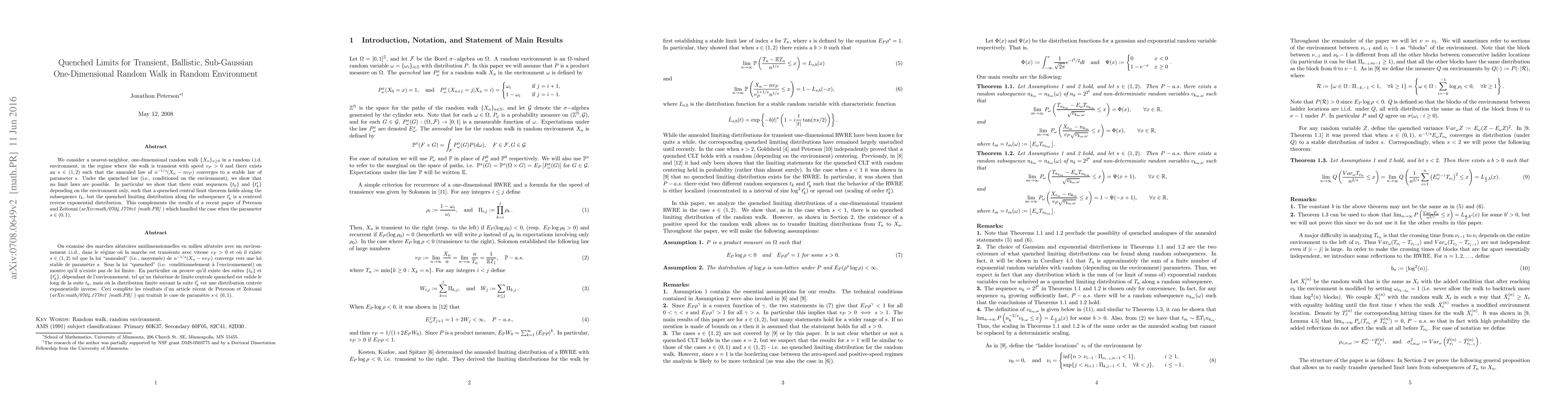 This paper investigates the quenched limits of a transient, ballistic, sub-Gaussian one-dimensional random walk in a random environment. It demonstrates that no universal limit laws exist under the quenched law, showing instead a subsequence-dependent behavior with a reverse exponential distribution.