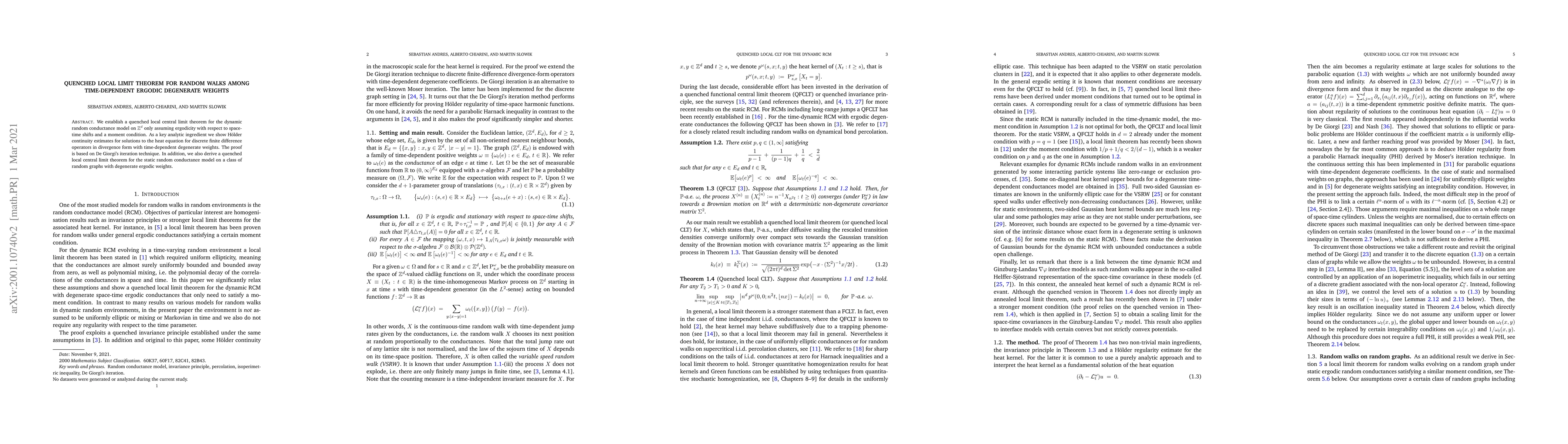 This paper establishes a quenched local central limit theorem for dynamic random conductance models on $\mathbb{Z}^d$ under ergodicity and moment conditions, using H\"older continuity estimates for heat equations with time-dependent degenerate weights. It also extends the theorem to static random conductance models on random graphs with similar weight conditions.