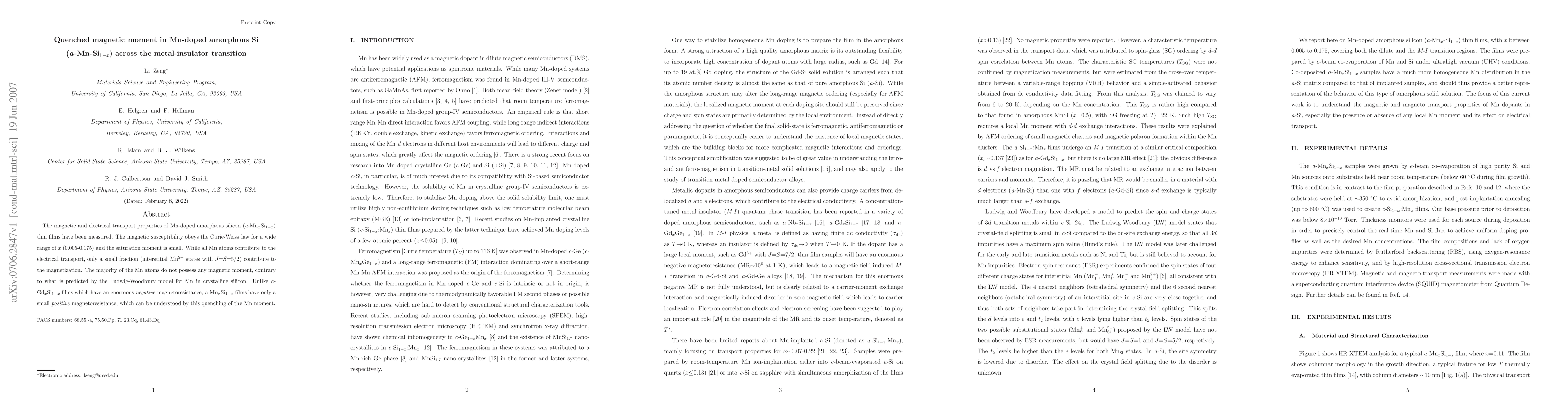 This study investigates the magnetic and electrical properties of Mn-doped amorphous silicon thin films, finding that while all Mn atoms affect electrical transport, only a small fraction contributes to magnetization, leading to a quenched magnetic moment and a small positive magnetoresistance. This contrasts with predictions and observations in crystalline silicon and other amorphous magnetic semiconductors.