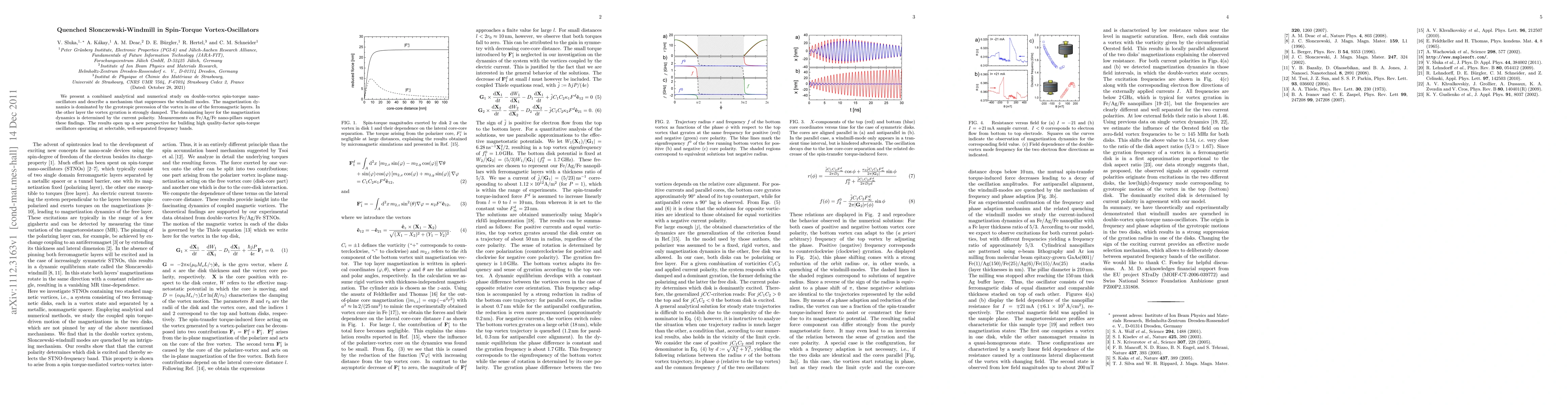 This study investigates double-vortex spin-torque nano-oscillators, revealing a mechanism that suppresses windmill modes through gyrotropic precession in one ferromagnetic layer and damping in the other, determined by current polarity. Experimental validation on Fe/Ag/Fe nano-pillars supports these findings, suggesting a pathway to high-quality spin-torque oscillators with tunable frequency bands.