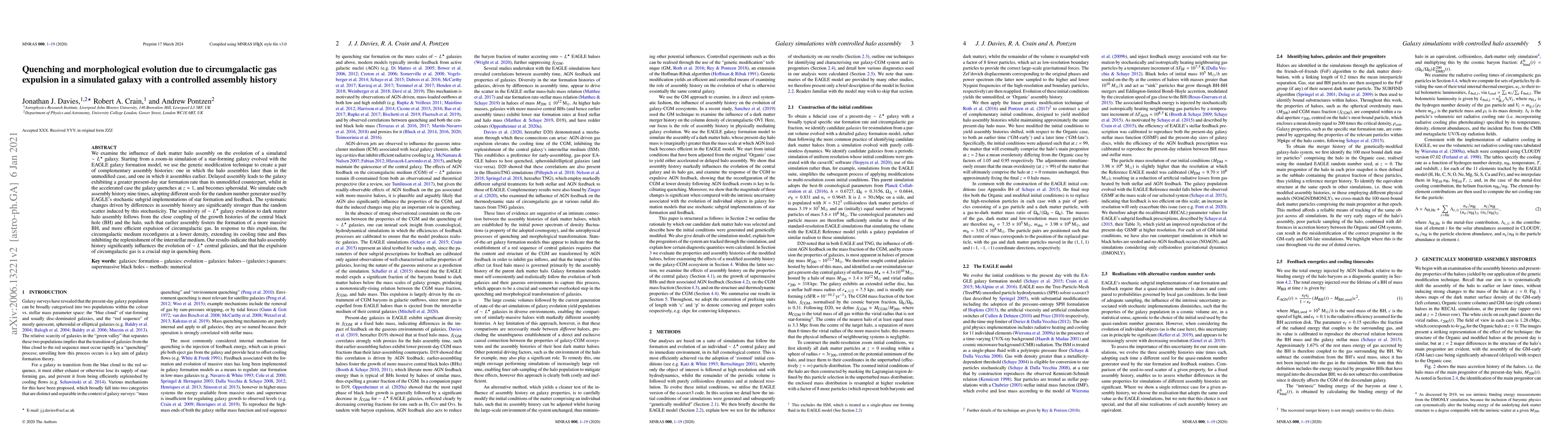 This study investigates how the assembly history of a dark matter halo affects the evolution of a simulated $L^\star$ galaxy, finding that delayed halo assembly leads to higher star formation rates, while accelerated assembly results in quenching and morphological changes. The expulsion of circumgalactic gas due to a more massive central black hole in the earlier assembly case plays a key role in quenching.