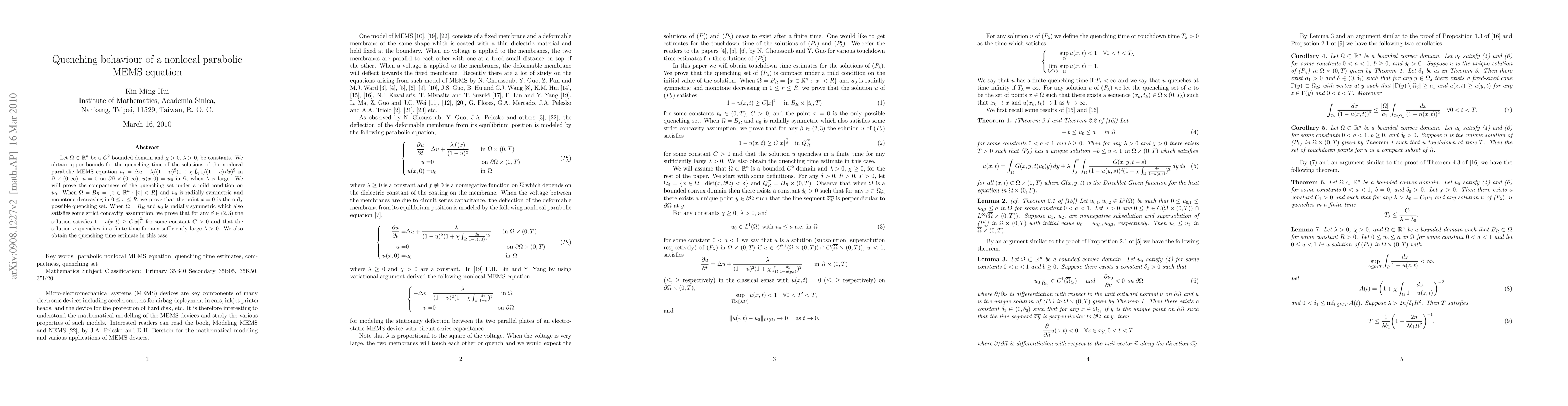 Researchers found that for a specific nonlocal parabolic MEMS equation, solutions quench to zero in finite time when the initial data satisfies certain conditions, especially when λ is large.