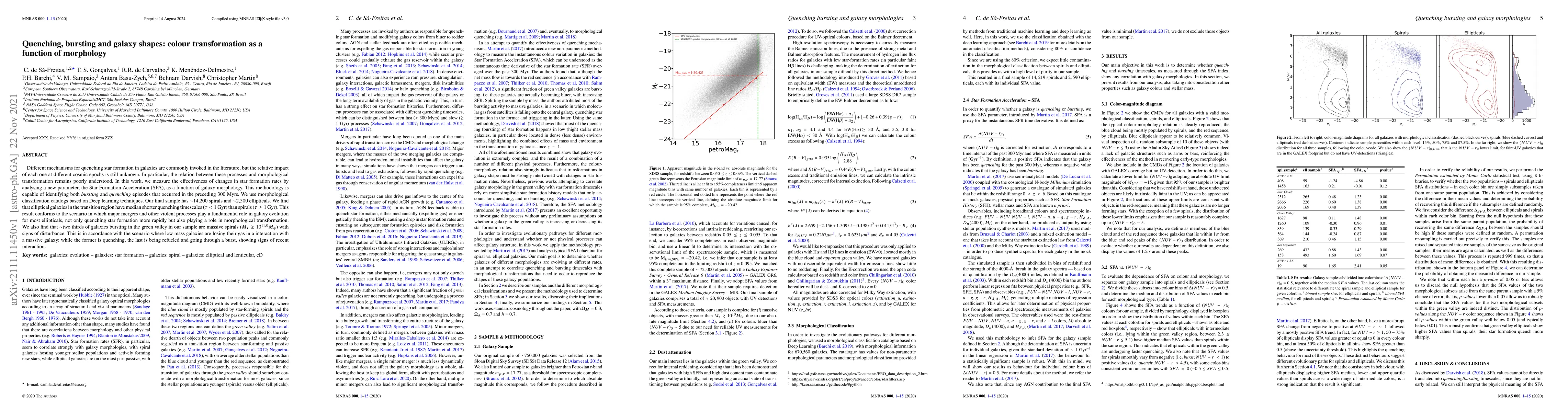This paper investigates the relationship between quenching star formation and galaxy morphology, introducing the Star Formation Acceleration (SFA) parameter to identify recent changes in star formation rates. The study finds that elliptical galaxies transition more rapidly than spirals, suggesting major mergers drive both rapid quenching and morphological changes. Additionally, massive spirals in the green valley show signs of disturbance and bursting, indicating interactions with more massive galaxies.