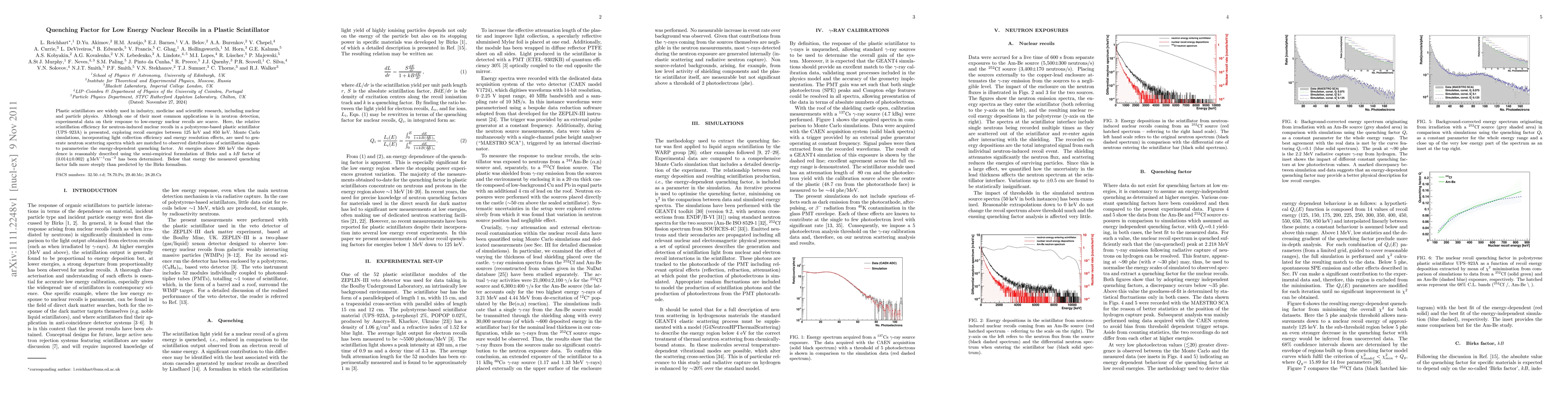 This study investigates the quenching factor for low-energy nuclear recoils in a polystyrene-based plastic scintillator, determining its scintillation efficiency for neutron-induced recoils between 125 keV and 850 keV. The research finds that above 300 keV, the Birks model reasonably describes the quenching factor, while below this energy, the factor decreases more sharply than predicted.
