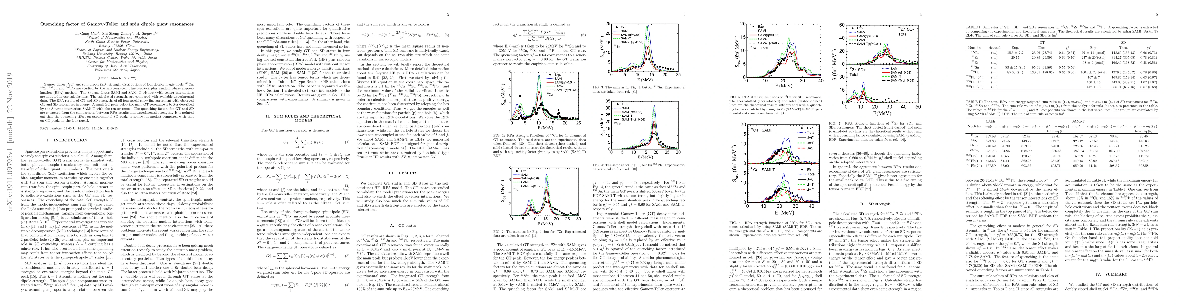 This paper investigates the Gamow-Teller and spin-dipole strength distributions in four doubly magic nuclei using the Hartree-Fock plus RPA method with Skyrme forces. The study finds good agreement between calculated and experimental resonance energies, and highlights a modest quenching effect on spin-dipole peaks compared to Gamow-Teller peaks.