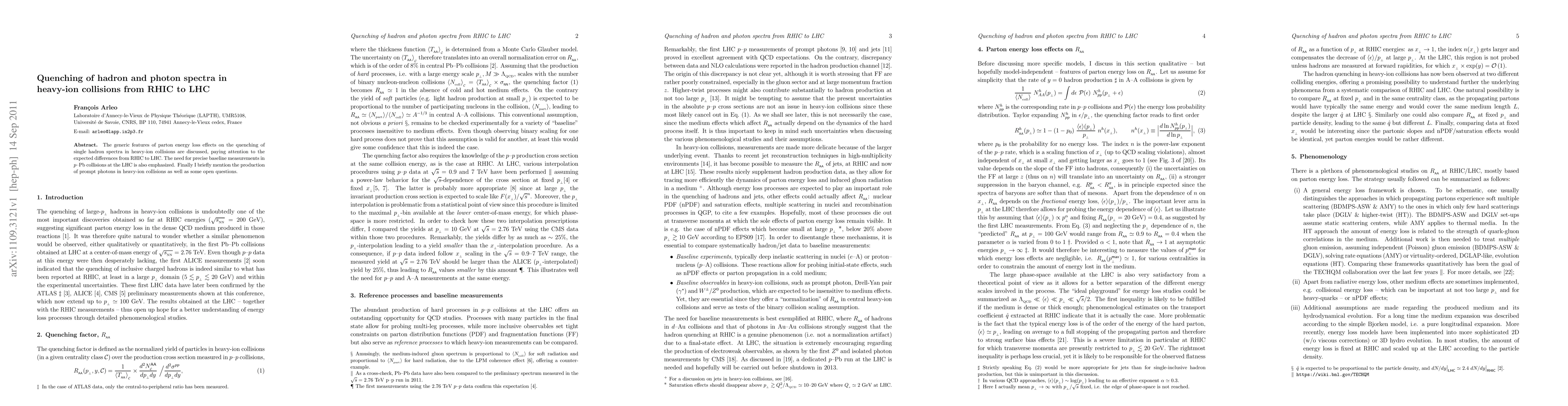 This paper discusses parton energy loss and its impact on quenching single hadron spectra in heavy-ion collisions, highlighting differences from RHIC to LHC energies. It stresses the importance of baseline measurements in p-Pb collisions at the LHC and briefly mentions prompt photon production and associated open questions.
