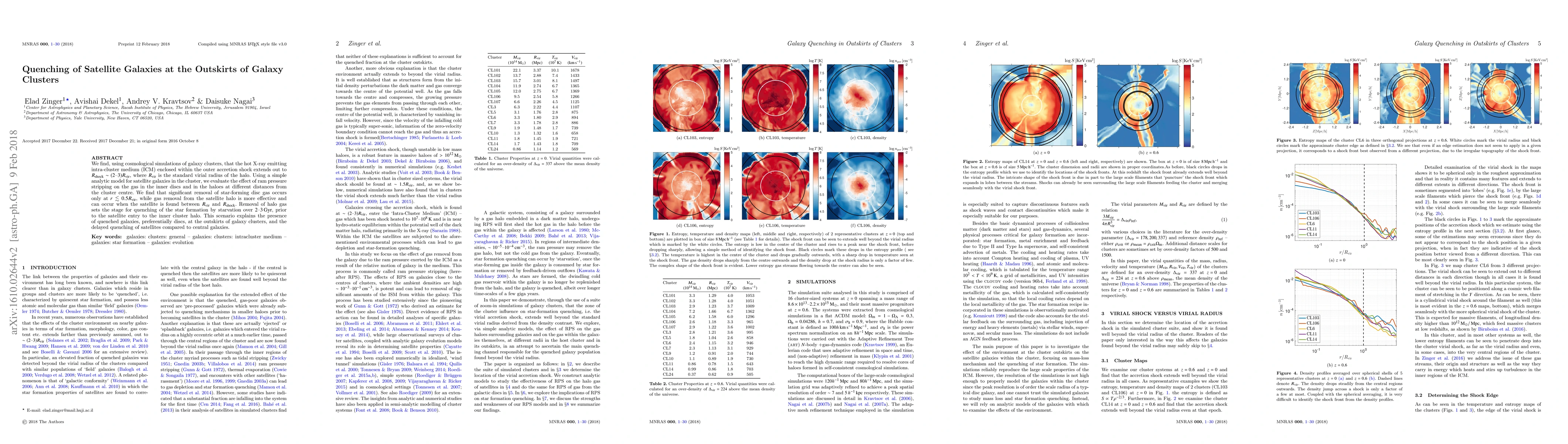 We find, using cosmological simulations of galaxy clusters, that the hot X-ray emitting intra-cluster medium (ICM) enclosed within the outer accretion shock extends out to $R_{\rm shock}\sim(2 - 3) R_{\rm vir}$, where $R_{\rm vir}$ is the standard virial radius of the halo. Using a simple analytic model for satellite galaxies in the cluster, we evaluate the effect of ram pressure stripping on the gas in the inner discs and in the haloes at different distances from the cluster centre. We find that significant removal of star-forming disc gas occurs only at $r \lesssim 0.5 R_{\rm vir}$, while gas removal from the satellite halo is more effective and can occur when the satellite is found between $ R_{\rm vir}$ and $R_{\rm shock}$. Removal of halo gas sets the stage for quenching of the star formation by starvation over $2\textrm{--}3\,\mathrm{Gyr}$, prior to the satellite entry to the inner cluster halo. This scenario explains the presence of quenched galaxies, preferentially discs, at the outskirts of galaxy clusters, and the delayed quenching of satellites compared to central galaxies.