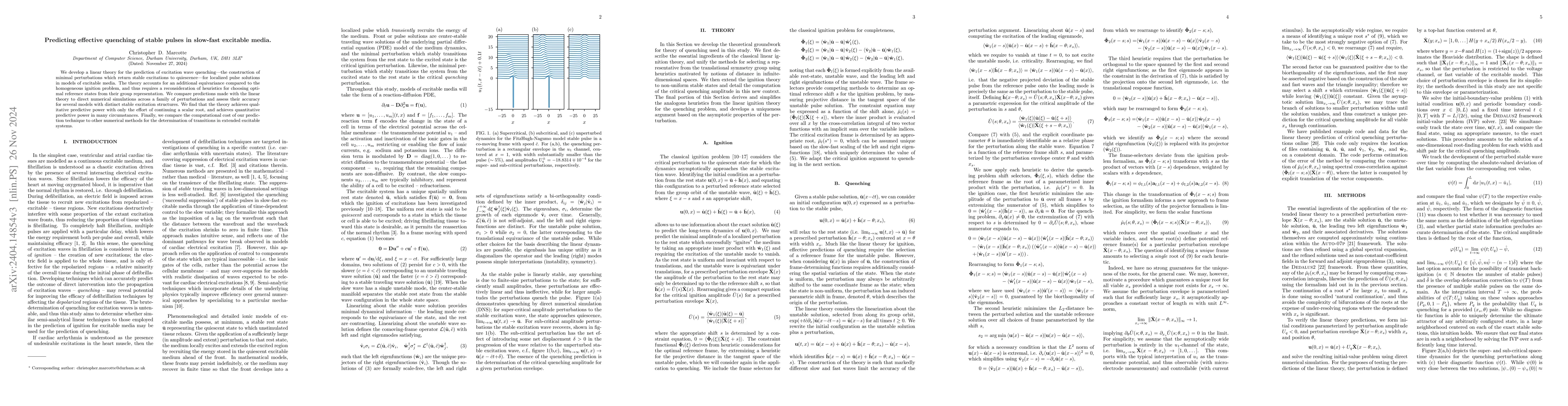 This research develops a linear theory to predict the quenching of stable excitations in excitable media by constructing minimal perturbations that return excitations to quiescence. The theory's accuracy is validated through comparisons with direct numerical simulations and it achieves both qualitative and quantitative predictive power, while also demonstrating computational efficiency compared to other numerical methods.