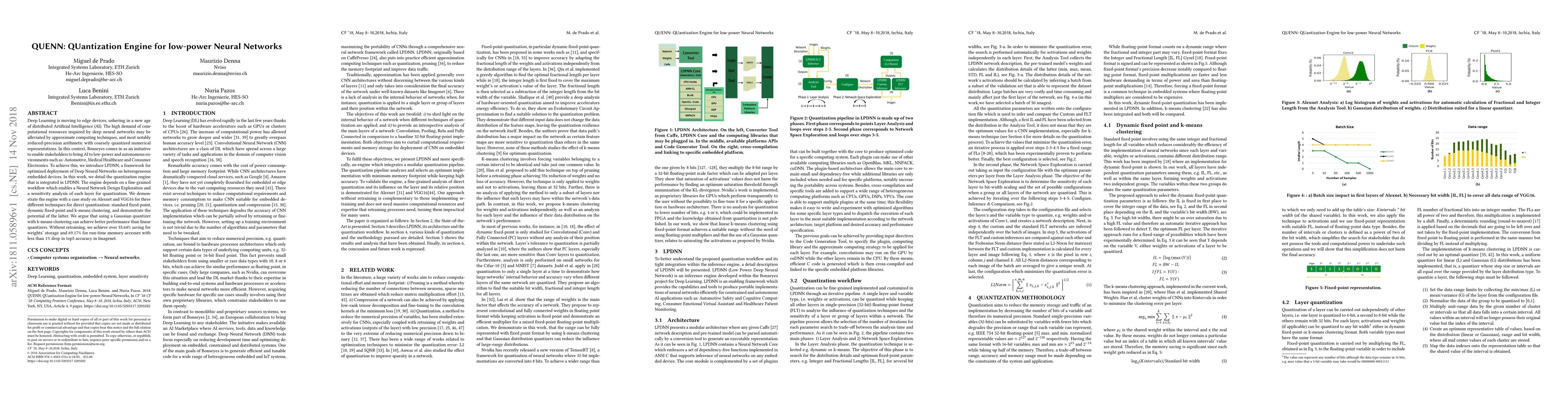 Deep Learning is moving to edge devices, ushering in a new age of distributed Artificial Intelligence (AI). The high demand of computational resources required by deep neural networks may be alleviated by approximate computing techniques, and most notably reduced-precision arithmetic with coarsely quantized numerical representations. In this context, Bonseyes comes in as an initiative to enable stakeholders to bring AI to low-power and autonomous environments such as: Automotive, Medical Healthcare and Consumer Electronics. To achieve this, we introduce LPDNN, a framework for optimized deployment of Deep Neural Networks on heterogeneous embedded devices. In this work, we detail the quantization engine that is integrated in LPDNN. The engine depends on a fine-grained workflow which enables a Neural Network Design Exploration and a sensitivity analysis of each layer for quantization. We demonstrate the engine with a case study on Alexnet and VGG16 for three different techniques for direct quantization: standard fixed-point, dynamic fixed-point and k-means clustering, and demonstrate the potential of the latter. We argue that using a Gaussian quantizer with k-means clustering can achieve better performance than linear quantizers. Without retraining, we achieve over 55.64\% saving for weights' storage and 69.17\% for run-time memory accesses with less than 1\% drop in top5 accuracy in Imagenet.