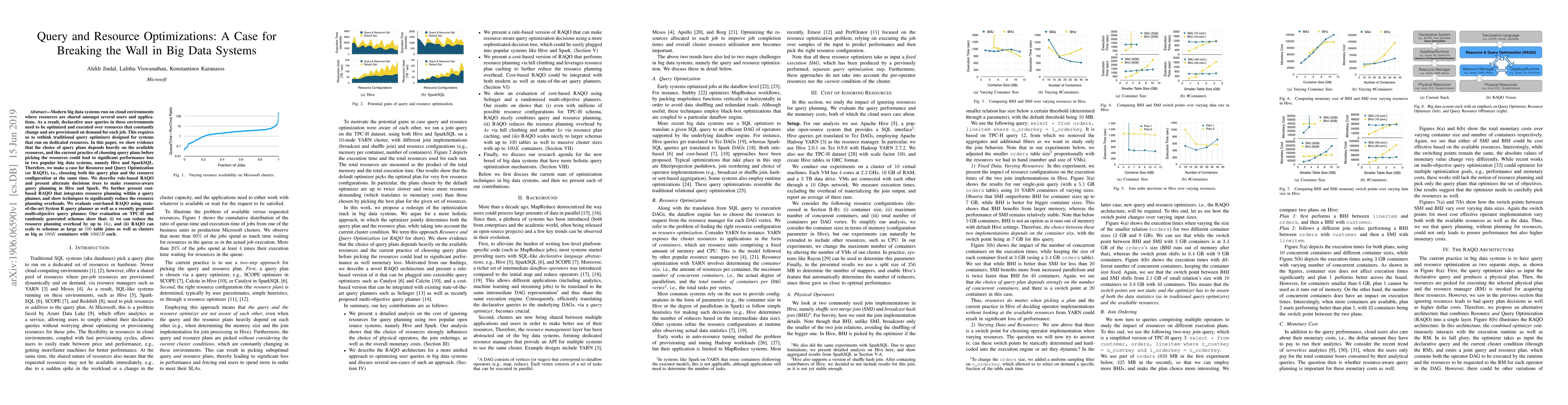 Modern big data systems run on cloud environments where resources are shared amongst several users and applications. As a result, declarative user queries in these environments need to be optimized and executed over resources that constantly change and are provisioned on demand for each job. This requires us to rethink traditional query optimizers designed for systems that run on dedicated resources. In this paper, we show evidence that the choice of query plans depends heavily on the available resources, and the current practice of choosing query plans before picking the resources could lead to significant performance loss in two popular big data systems, namely Hive and SparkSQL. Therefore, we make a case for Resource and Query Optimization (or RAQO), i.e., choosing both the query plan and the resource configuration at the same time. We describe rule-based RAQO and present alternate decisions trees to make resource-aware query planning in Hive and Spark. We further present cost-based RAQO that integrates resource planning within a query planner, and show techniques to significantly reduce the resource planning overheads. We evaluate cost-based RAQO using state-of-the-art System R query planner as well as a recently proposed multi-objective query planner. Our evaluation on TPC-H and randomly generated schemas show that: (i) we can reduce the resource planning overhead by up to 16x, and (ii) RAQO can scale to schemas as large as 100 table joins as well as clusters as big as 100K containers with 100GB each.