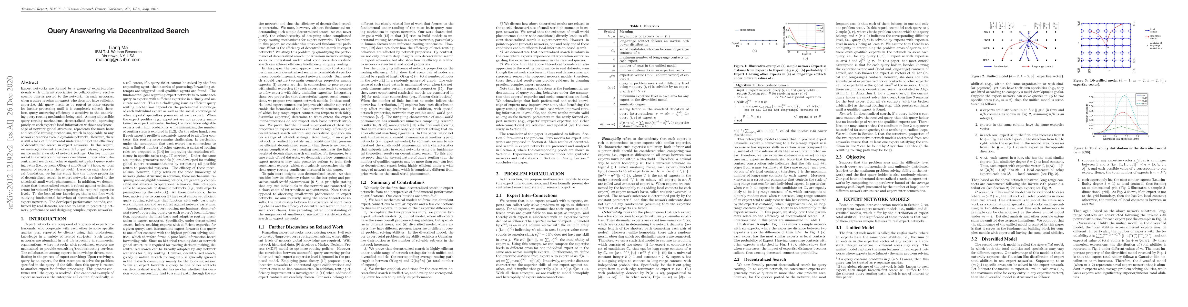 The paper establishes performance bounds for decentralized search in expert networks, demonstrating its efficiency under specific conditions and providing insights into its relationship with the small-world phenomenon.
