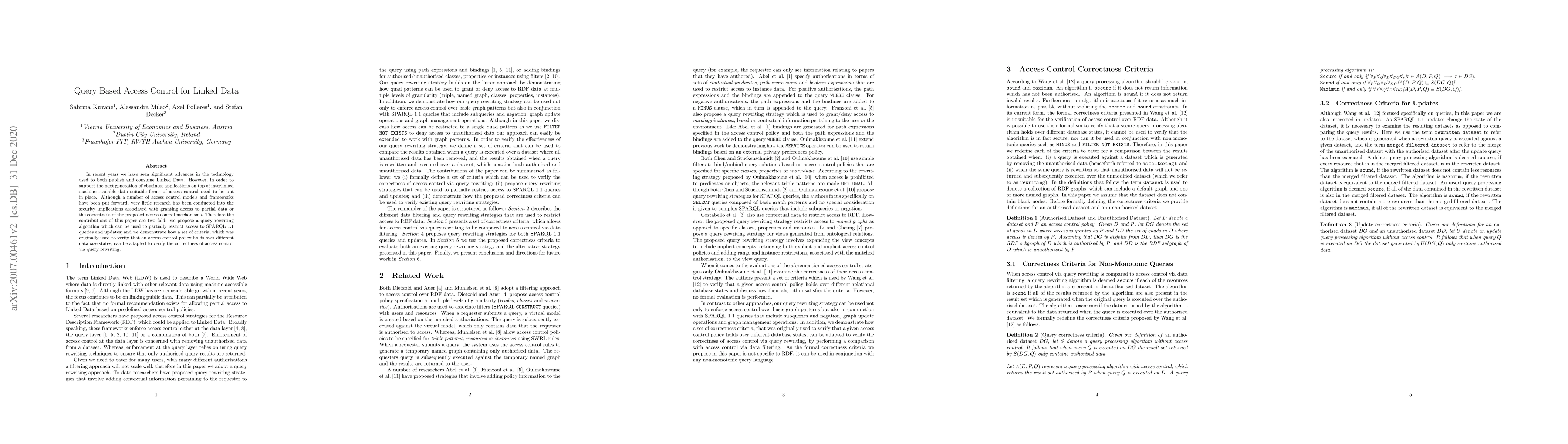 This paper proposes a query rewriting algorithm to restrict access to SPARQL 1.1 queries and updates for Linked Data, and adapts existing criteria to verify the correctness of access control mechanisms in interlinked data environments.