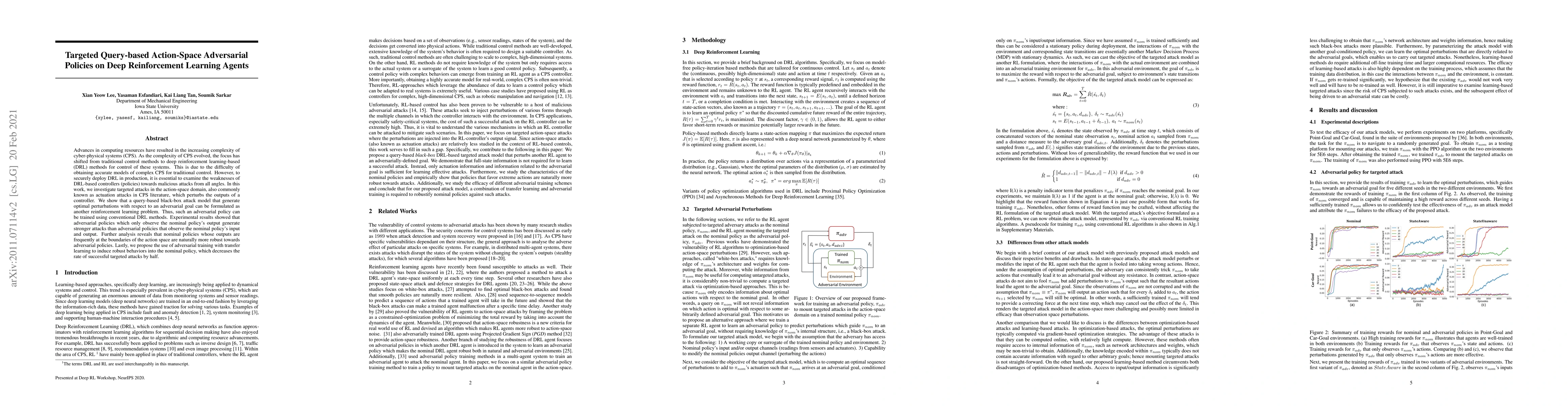 Advances in computing resources have resulted in the increasing complexity of cyber-physical systems (CPS). As the complexity of CPS evolved, the focus has shifted from traditional control methods to deep reinforcement learning-based (DRL) methods for control of these systems. This is due to the difficulty of obtaining accurate models of complex CPS for traditional control. However, to securely deploy DRL in production, it is essential to examine the weaknesses of DRL-based controllers (policies) towards malicious attacks from all angles. In this work, we investigate targeted attacks in the action-space domain, also commonly known as actuation attacks in CPS literature, which perturbs the outputs of a controller. We show that a query-based black-box attack model that generates optimal perturbations with respect to an adversarial goal can be formulated as another reinforcement learning problem. Thus, such an adversarial policy can be trained using conventional DRL methods. Experimental results showed that adversarial policies that only observe the nominal policy's output generate stronger attacks than adversarial policies that observe the nominal policy's input and output. Further analysis reveals that nominal policies whose outputs are frequently at the boundaries of the action space are naturally more robust towards adversarial policies. Lastly, we propose the use of adversarial training with transfer learning to induce robust behaviors into the nominal policy, which decreases the rate of successful targeted attacks by 50%.
