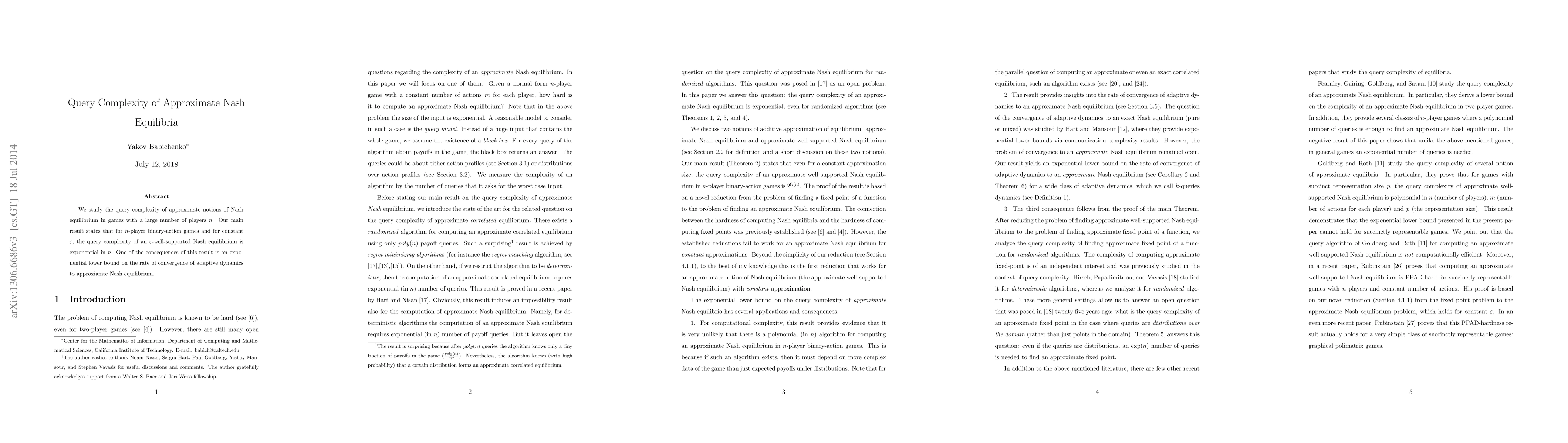 This paper investigates the query complexity of finding approximate Nash equilibria in large $n$-player binary-action games, proving that the query complexity for $\varepsilon$-well-supported equilibria is exponential in $n$. It also demonstrates an exponential lower bound on the convergence rate of adaptive dynamics to such equilibria.