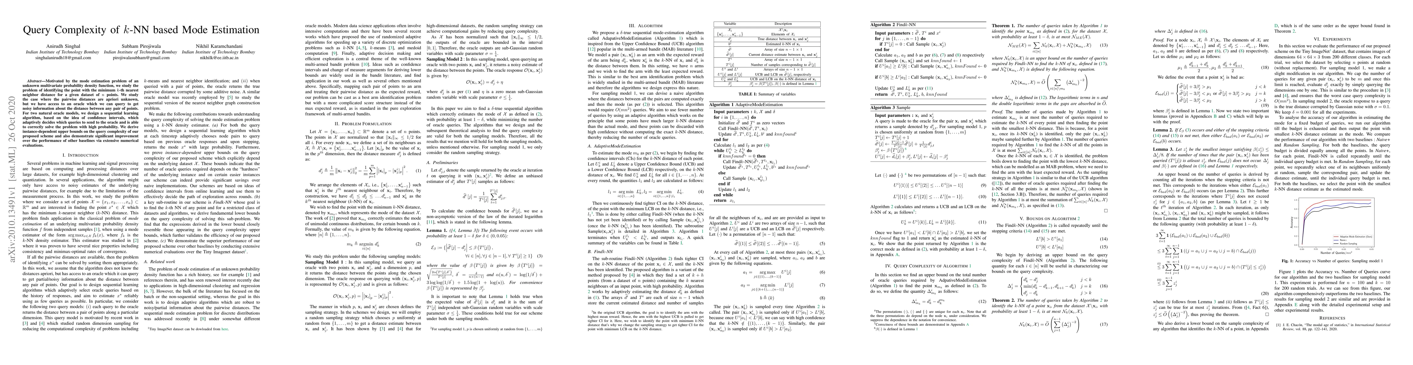 Motivated by the mode estimation problem of an unknown multivariate probability density function, we study the problem of identifying the point with the minimum k-th nearest neighbor distance for a given dataset of n points. We study the case where the pairwise distances are apriori unknown, but we have access to an oracle which we can query to get noisy information about the distance between any pair of points. For two natural oracle models, we design a sequential learning algorithm, based on the idea of confidence intervals, which adaptively decides which queries to send to the oracle and is able to correctly solve the problem with high probability. We derive instance-dependent upper bounds on the query complexity of our proposed scheme and also demonstrate significant improvement over the performance of other baselines via extensive numerical evaluations.