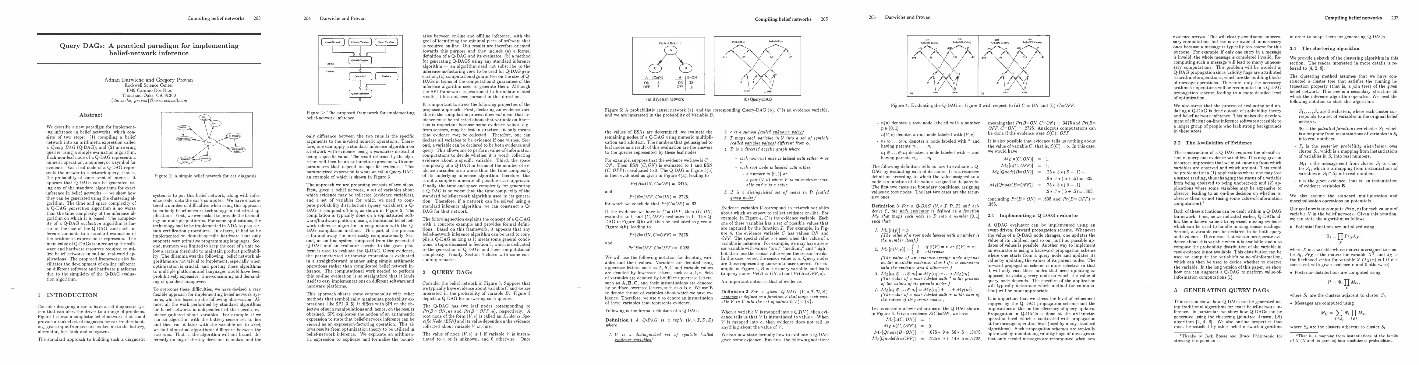 This paper introduces Query DAGs (Q-DAGs) as a new paradigm for efficient belief network inference, transforming networks into arithmetic expressions. Q-DAGs reduce resource requirements and simplify on-line inference across different platforms, offering linear evaluation complexity.