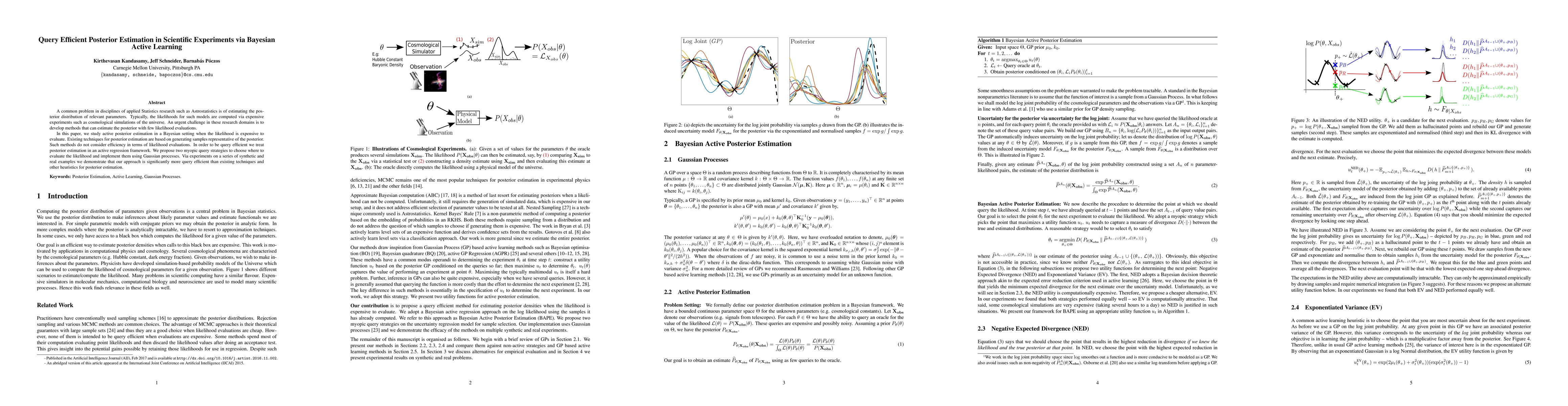 This paper proposes two query-efficient strategies for Bayesian active learning to estimate posterior distributions in expensive experiments, such as cosmological simulations. The methods are shown to be more efficient in terms of likelihood evaluations compared to existing sampling-based techniques, using Gaussian processes for implementation.