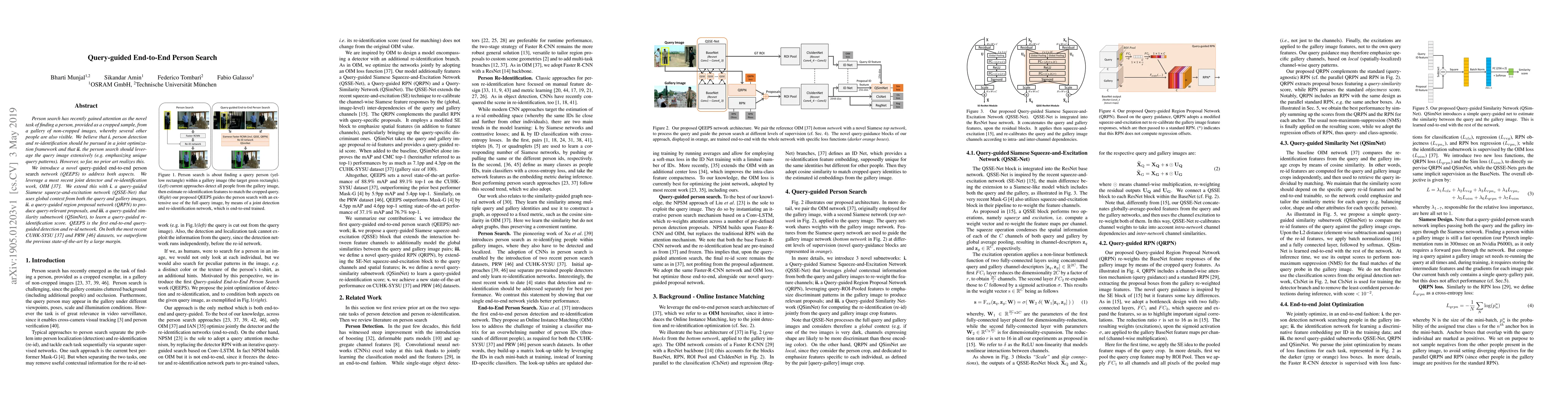 The paper proposes QEEPS, a novel end-to-end person search network that integrates query-guided techniques to optimize person detection and re-identification, outperforming previous methods on CUHK-SYSU and PRW datasets. It combines a query-guided Siamese network, region proposal network, and similarity subnetwork to enhance search accuracy.