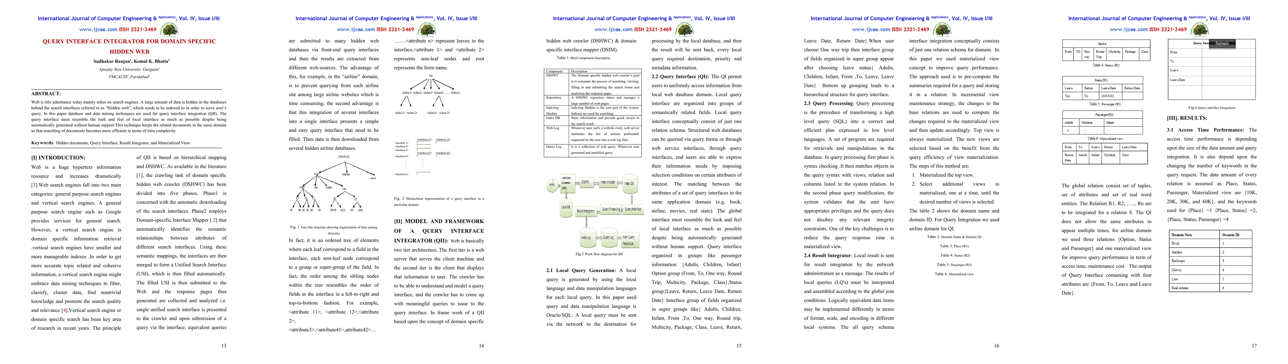 This paper proposes a method for integrating query interfaces to access the Hidden Web using database and data mining techniques, aiming to generate local-like interfaces automatically while maintaining domain-specific efficiency and reducing time complexity in document searches.