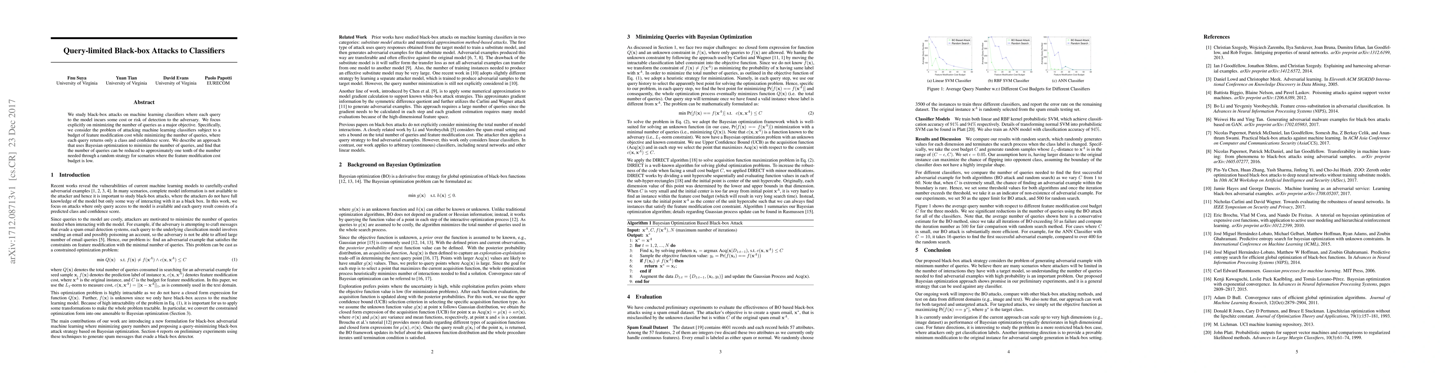 Researchers developed a method to minimize black-box attacks on machine learning classifiers by using Bayesian optimization, reducing the number of queries from nearly 10x to approximately one-tenth in scenarios with low feature modification cost budgets.