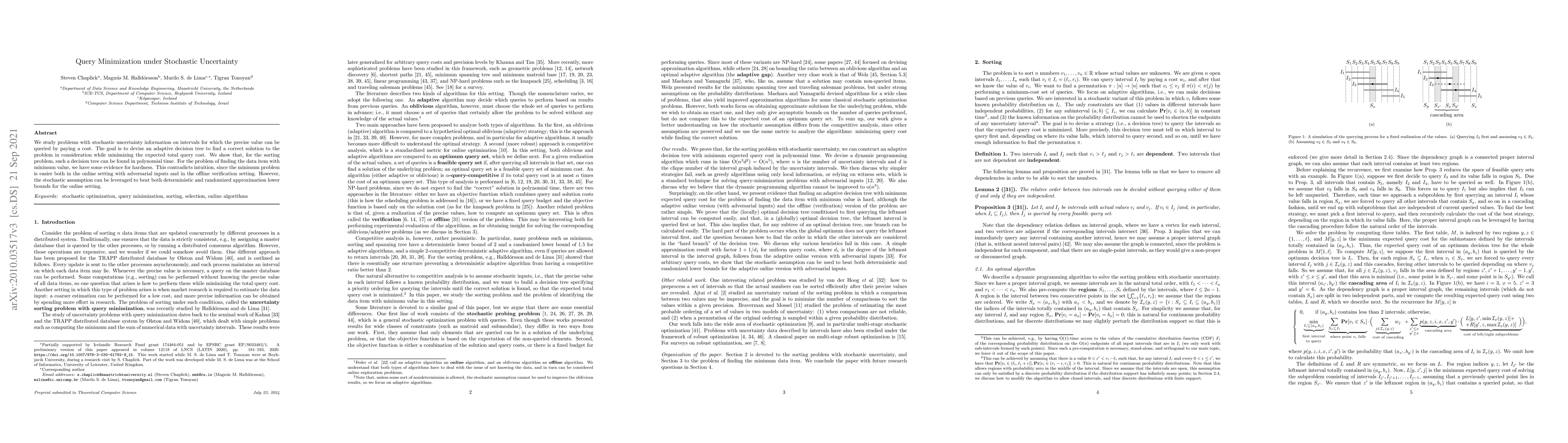 We study problems with stochastic uncertainty information on intervals for which the precise value can be queried by paying a cost. The goal is to devise an adaptive decision tree to find a correct solution to the problem in consideration while minimizing the expected total query cost. We show that, for the sorting problem, such a decision tree can be found in polynomial time. For the problem of finding the data item with minimum value, we have some evidence for hardness. This contradicts intuition, since the minimum problem is easier both in the online setting with adversarial inputs and in the offline verification setting. However, the stochastic assumption can be leveraged to beat both deterministic and randomized approximation lower bounds for the online setting.