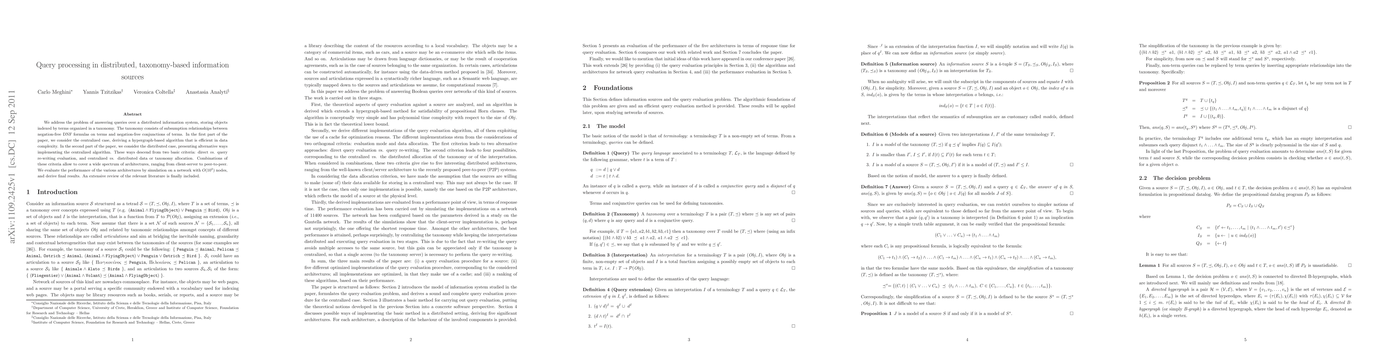Researchers developed a hypergraph-based algorithm for efficient query processing in distributed information systems with taxonomy-based indexing, covering client-server to peer-to-peer architectures.