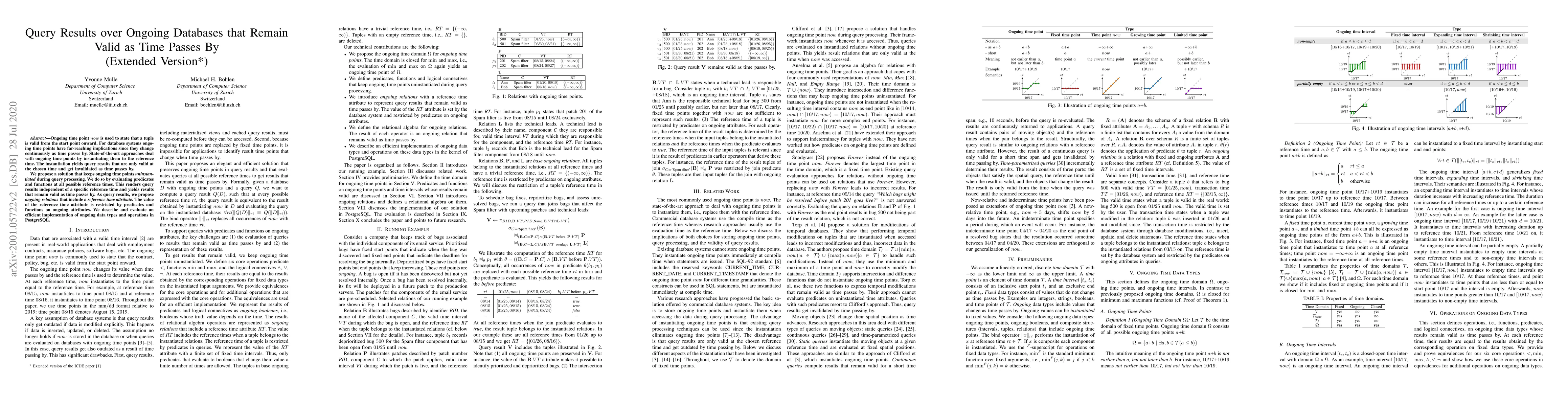 Ongoing time point now is used to state that a tuple is valid from the start point onward. For database systems ongoing time points have far-reaching implications since they change continuously as time passes by. State-of-the-art approaches deal with ongoing time points by instantiating them to the reference time. The instantiation yields query results that are only valid at the chosen time and get invalidated as time passes by. We propose a solution that keeps ongoing time points uninstantiated during query processing. We do so by evaluating predicates and functions at all possible reference times. This renders query results independent of a specific reference time and yields results that remain valid as time passes by. As query results, we propose ongoing relations that include a reference time attribute. The value of the reference time attribute is restricted by predicates and functions on ongoing attributes. We describe and evaluate an efficient implementation of ongoing data types and operations in PostgreSQL.