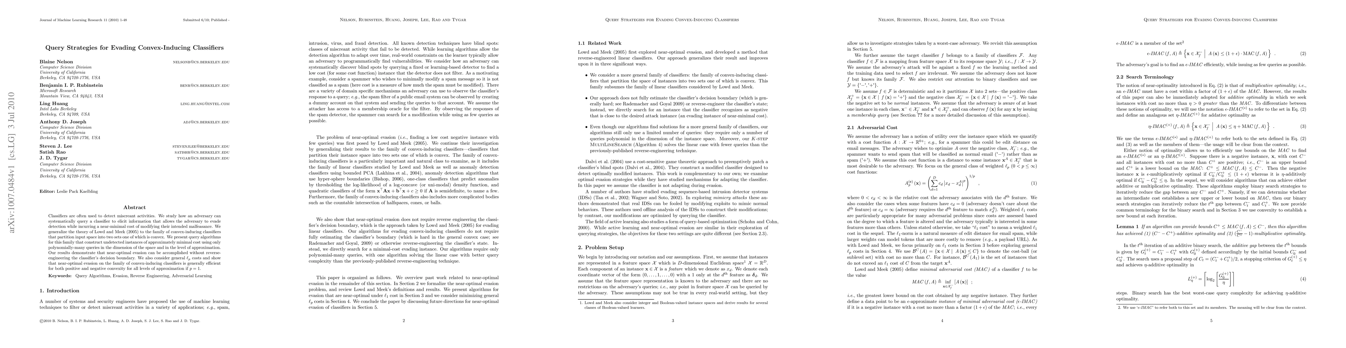 Researchers developed algorithms to evade convex-inducing classifiers with minimal cost, demonstrating that near-optimal evasion is possible without reverse-engineering the classifier's decision boundary.