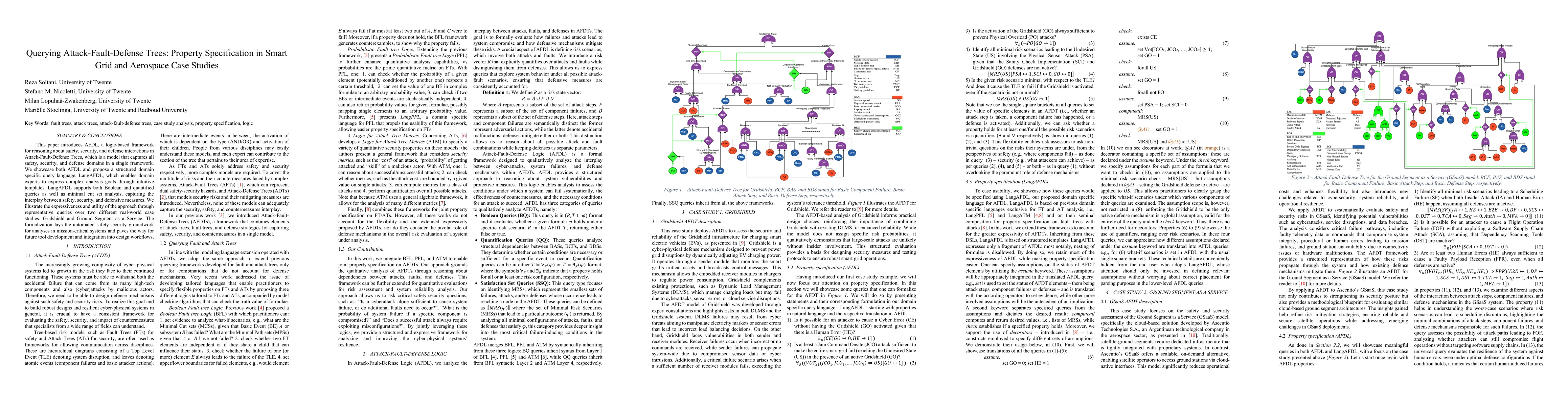 This paper introduces AFDL, a logic-based framework for reasoning about safety, security, and defense interactions in Attack-Fault-Defense Trees, which is a model that captures all safety, security, and defense domains in a single framework. We showcase both AFDL and propose a structured domain specific query language, LangAFDL, which enables domain experts to express complex analysis goals through intuitive templates. LangAFDL supports both Boolean and quantified queries as well as minimal cut set analysis, capturing the interplay between safety, security, and defensive measures. We illustrate the expressiveness and utility of the approach through representative queries over two different real-world case studies: Gridshield and Ground Segment as a Service. The formalization lays the automated safety-security groundwork for analyses in mission-critical systems and paves the way for future tool development and integration into design workflows.