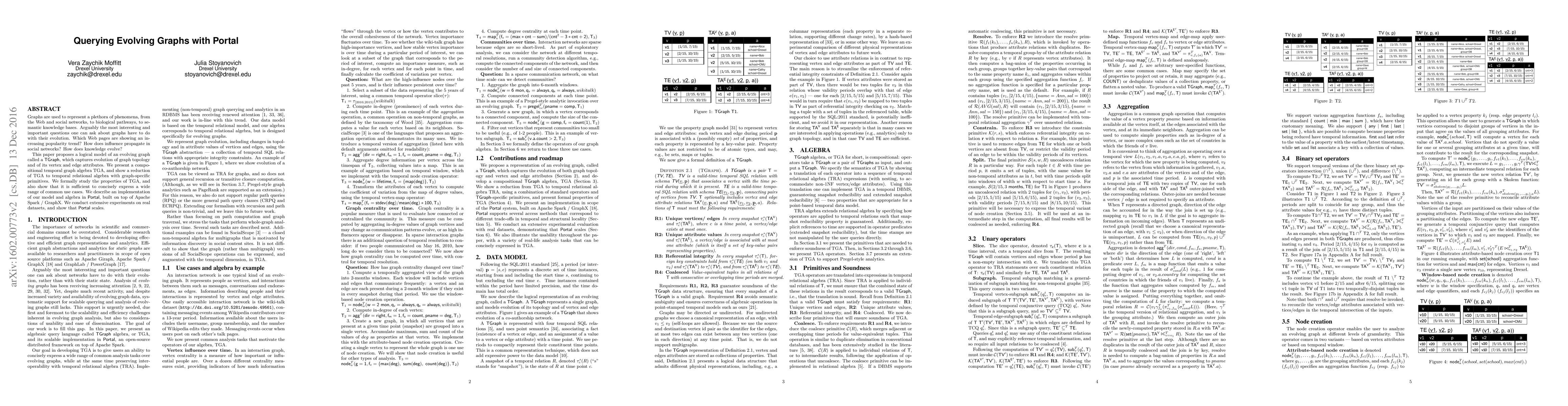 Graphs are used to represent a plethora of phenomena, from the Web and social networks, to biological pathways, to semantic knowledge bases. Arguably the most interesting and important questions one can ask about graphs have to do with their evolution. Which Web pages are showing an increasing popularity trend? How does influence propagate in social networks? How does knowledge evolve? This paper proposes a logical model of an evolving graph called a TGraph, which captures evolution of graph topology and of its vertex and edge attributes. We present a compositional temporal graph algebra TGA, and show a reduction of TGA to temporal relational algebra with graph-specific primitives. We formally study the properties of TGA, and also show that it is sufficient to concisely express a wide range of common use cases. We describe an implementation of our model and algebra in Portal, built on top of Apache Spark / GraphX. We conduct extensive experiments on real datasets, and show that Portal scales.
