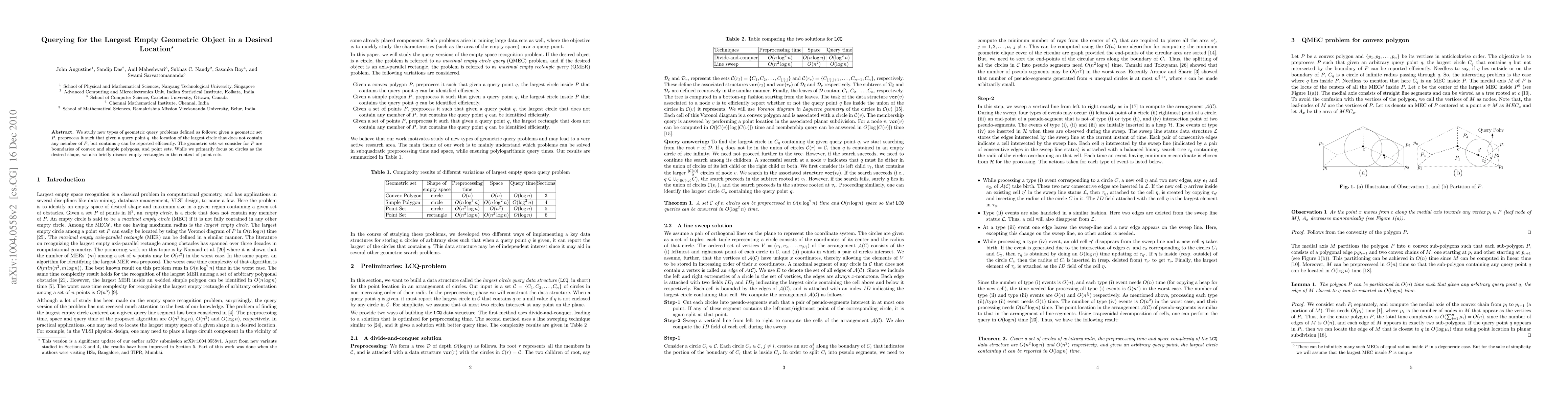 This paper investigates efficient querying techniques for finding the largest empty geometric object, specifically circles or rectangles, that can encompass a query point without intersecting a predefined geometric set $P$, which includes convex and simple polygons and point sets. The study aims to preprocess $P$ to enable rapid responses to such queries.