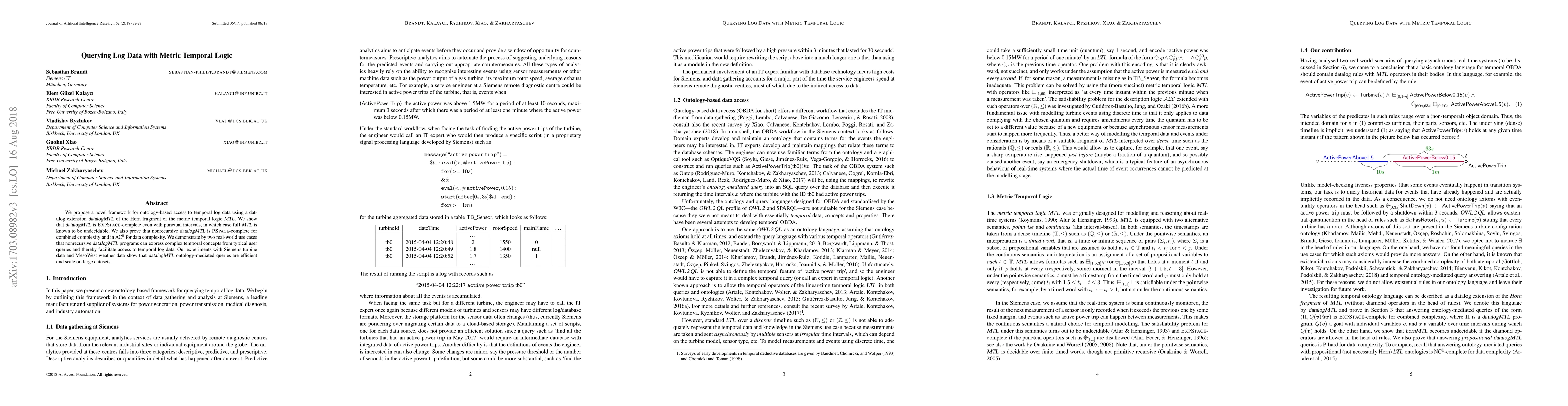 This paper introduces a new datalog extension, datalogMTL, for querying temporal log data using metric temporal logic. It demonstrates that the framework is efficient and scalable, as shown through experiments on large datasets, and proves its computational complexity.