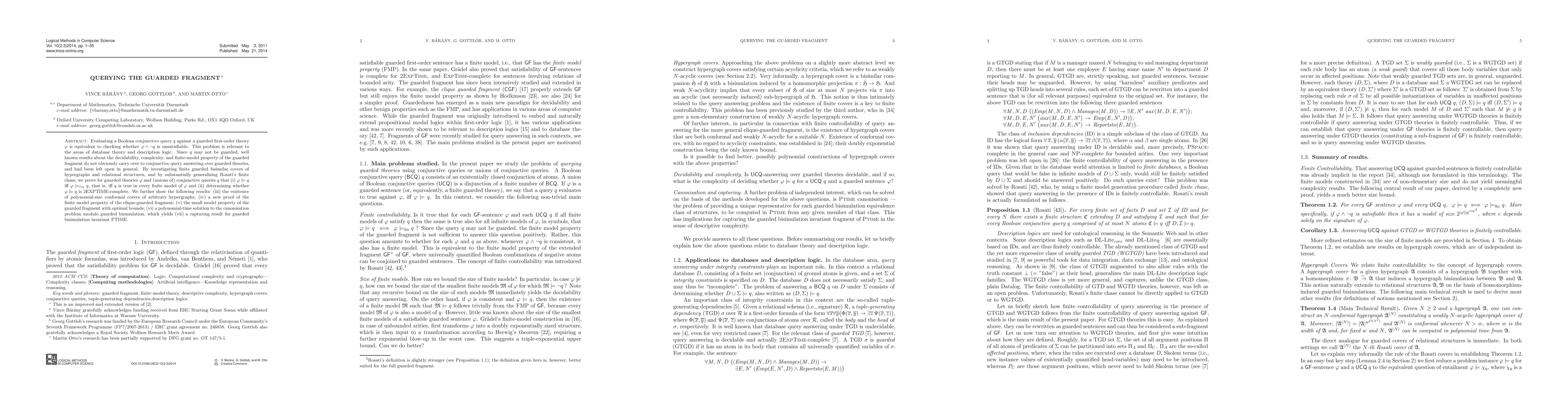 Evaluating a Boolean conjunctive query Q against a guarded first-order theory F is equivalent to checking whether "F and not Q" is unsatisfiable. This problem is relevant to the areas of database theory and description logic. Since Q may not be guarded, well known results about the decidability, complexity, and finite-model property of the guarded fragment do not obviously carry over to conjunctive query answering over guarded theories, and had been left open in general. By investigating finite guarded bisimilar covers of hypergraphs and relational structures, and by substantially generalising Rosati's finite chase, we prove for guarded theories F and (unions of) conjunctive queries Q that (i) Q is true in each model of F iff Q is true in each finite model of F and (ii) determining whether F implies Q is 2EXPTIME-complete. We further show the following results: (iii) the existence of polynomial-size conformal covers of arbitrary hypergraphs; (iv) a new proof of the finite model property of the clique-guarded fragment; (v) the small model property of the guarded fragment with optimal bounds; (vi) a polynomial-time solution to the canonisation problem modulo guarded bisimulation, which yields (vii) a capturing result for guarded bisimulation invariant PTIME.