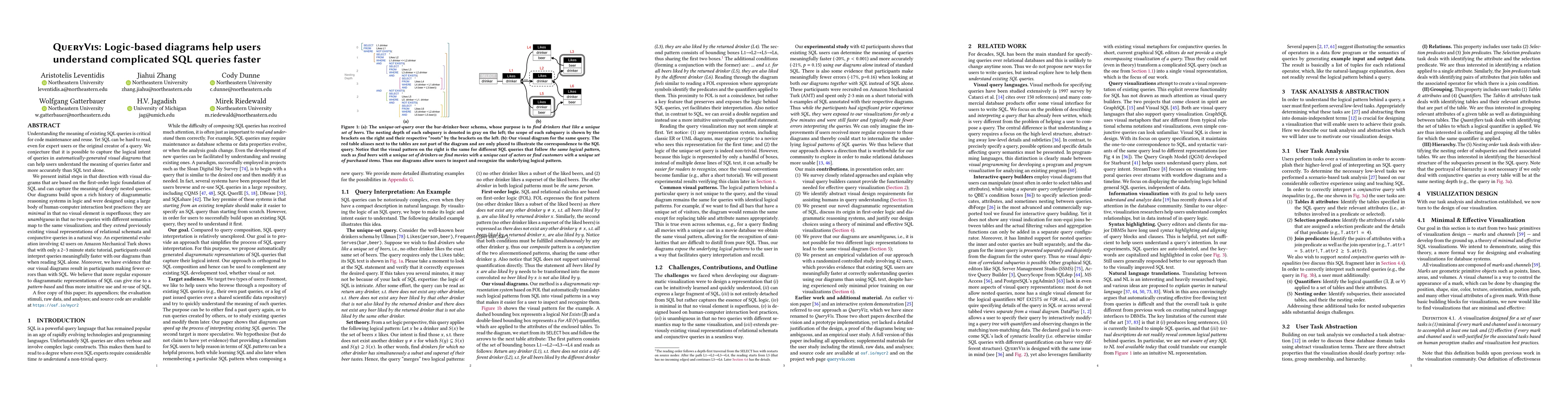 Understanding the meaning of existing SQL queries is critical for code maintenance and reuse. Yet SQL can be hard to read, even for expert users or the original creator of a query. We conjecture that it is possible to capture the logical intent of queries in \emph{automatically-generated visual diagrams} that can help users understand the meaning of queries faster and more accurately than SQL text alone. We present initial steps in that direction with visual diagrams that are based on the first-order logic foundation of SQL and can capture the meaning of deeply nested queries. Our diagrams build upon a rich history of diagrammatic reasoning systems in logic and were designed using a large body of human-computer interaction best practices: they are \emph{minimal} in that no visual element is superfluous; they are \emph{unambiguous} in that no two queries with different semantics map to the same visualization; and they \emph{extend} previously existing visual representations of relational schemata and conjunctive queries in a natural way. An experimental evaluation involving 42 users on Amazon Mechanical Turk shows that with only a 2--3 minute static tutorial, participants could interpret queries meaningfully faster with our diagrams than when reading SQL alone. Moreover, we have evidence that our visual diagrams result in participants making fewer errors than with SQL. We believe that more regular exposure to diagrammatic representations of SQL can give rise to a \emph{pattern-based} and thus more intuitive use and re-use of SQL. All details on the experimental study, the evaluation stimuli, raw data, and analyses, and source code are available at https://osf.io/mycr2