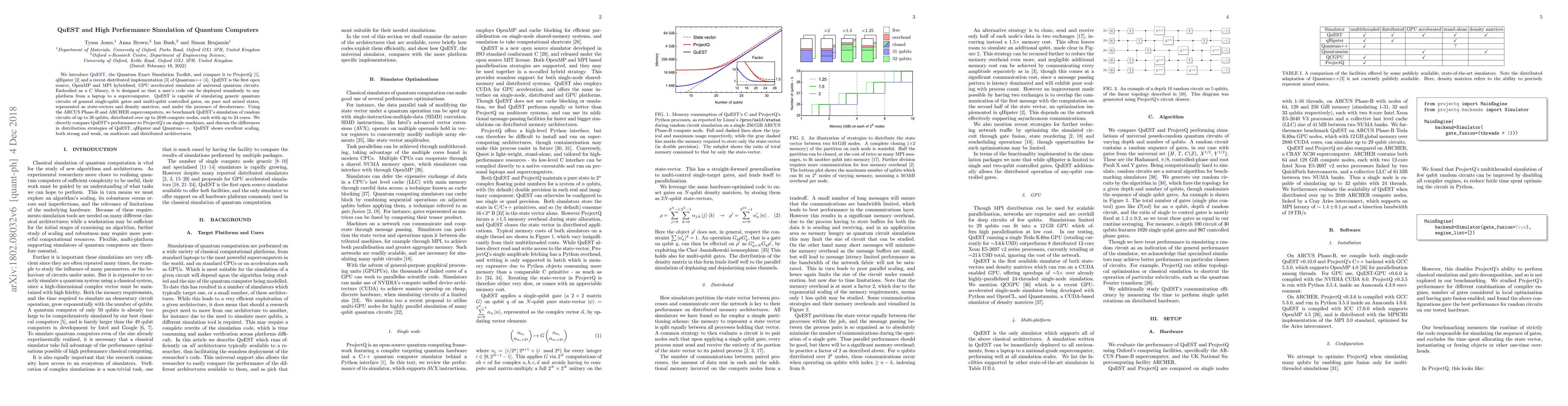 We introduce QuEST, the Quantum Exact Simulation Toolkit, and compare it to ProjectQ, qHipster and a recent distributed implementation of Quantum++. QuEST is the first open source, OpenMP and MPI hybridised, GPU accelerated simulator of universal quantum circuits. Embodied as a C library, it is designed so that a user's code can be deployed seamlessly to any platform from a laptop to a supercomputer. QuEST is capable of simulating generic quantum circuits of general single-qubit gates and multi-qubit controlled gates, on pure and mixed states, represented as state-vectors and density matrices, and under the presence of decoherence. Using the ARCUS Phase-B and ARCHER supercomputers, we benchmark QuEST's simulation of random circuits of up to 38 qubits, distributed over up to 2048 compute nodes, each with up to 24 cores. We directly compare QuEST's performance to ProjectQ's on single machines, and discuss the differences in distribution strategies of QuEST, qHipster and Quantum++. QuEST shows excellent scaling, both strong and weak, on multicore and distributed architectures.