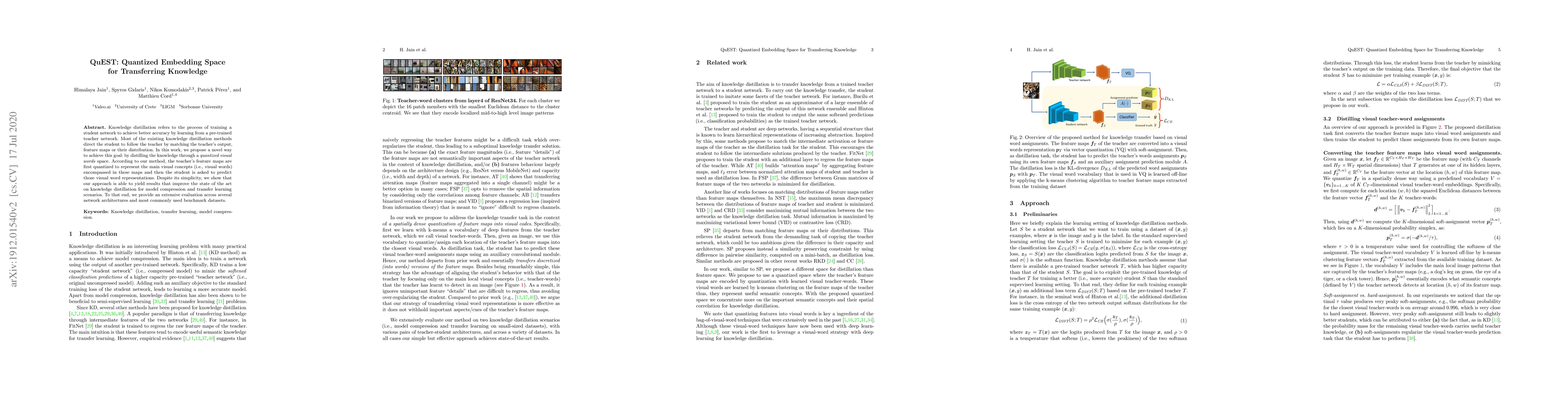 This research introduces QUEST, a novel knowledge distillation method that quantizes teacher feature maps to represent main visual concepts, which the student then learns to predict. QUEST demonstrates improved performance over existing methods on various network architectures and benchmark datasets.