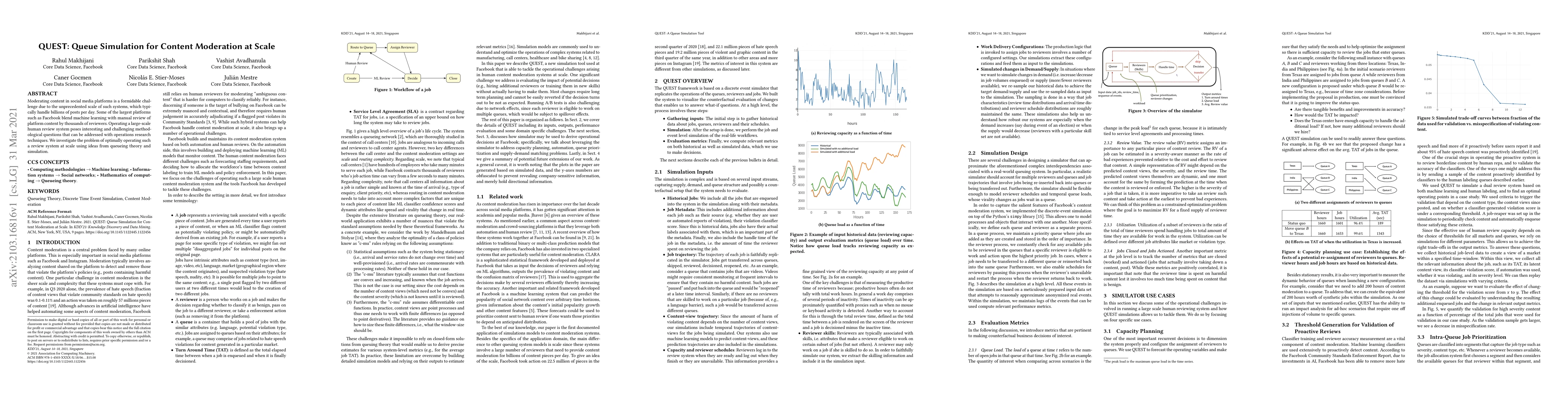 This paper uses queueing theory and simulation to optimize content moderation systems on large social media platforms, balancing human review with machine learning. It aims to improve efficiency and accuracy in reviewing billions of posts daily.
