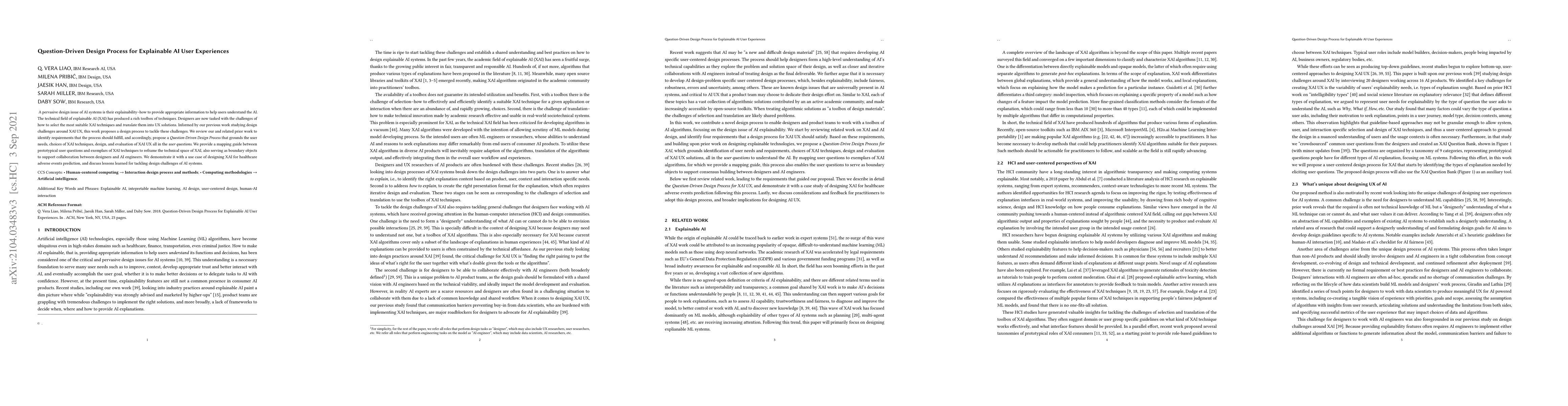 This paper proposes a Question-Driven Design Process for creating explainable AI user experiences, emphasizing the importance of aligning user questions with suitable XAI techniques. It demonstrates the process through a healthcare adverse events prediction use case, highlighting its utility in bridging the gap between designers and AI engineers.