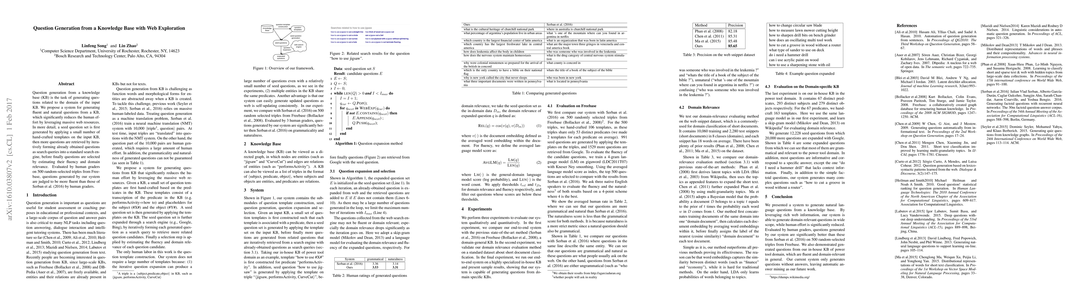 A system generates fluent questions from a knowledge base by leveraging web resources, reducing human effort, and achieving more natural results than existing methods.