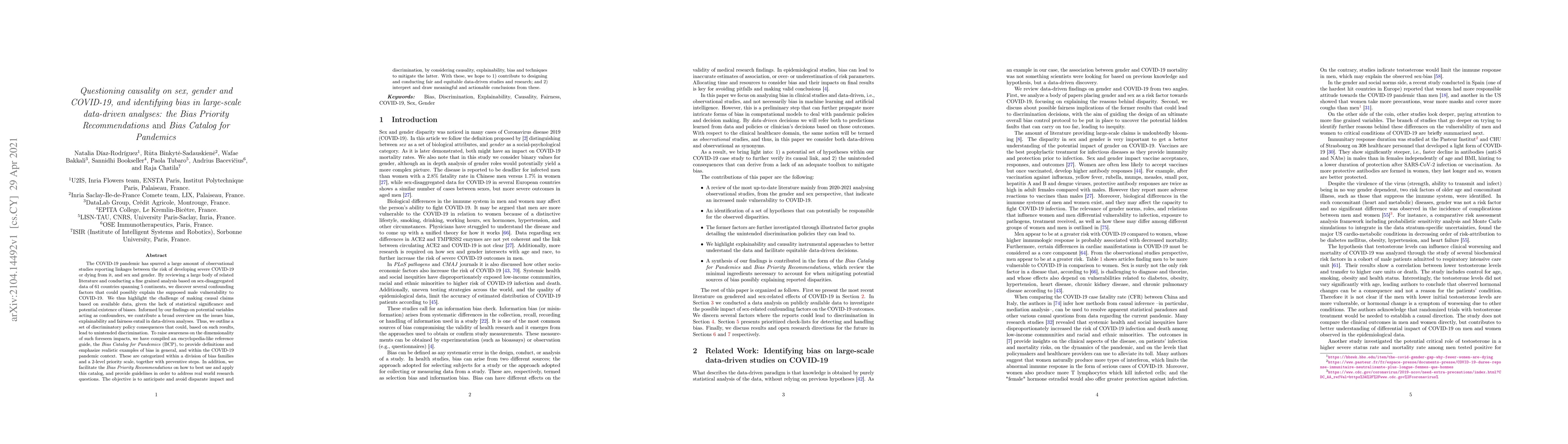 The COVID-19 pandemic has spurred a large amount of observational studies reporting linkages between the risk of developing severe COVID-19 or dying from it, and sex and gender. By reviewing a large body of related literature and conducting a fine grained analysis based on sex-disaggregated data of 61 countries spanning 5 continents, we discover several confounding factors that could possibly explain the supposed male vulnerability to COVID-19. We thus highlight the challenge of making causal claims based on available data, given the lack of statistical significance and potential existence of biases. Informed by our findings on potential variables acting as confounders, we contribute a broad overview on the issues bias, explainability and fairness entail in data-driven analyses. Thus, we outline a set of discriminatory policy consequences that could, based on such results, lead to unintended discrimination. To raise awareness on the dimensionality of such foreseen impacts, we have compiled an encyclopedia-like reference guide, the Bias Catalog for Pandemics (BCP), to provide definitions and emphasize realistic examples of bias in general, and within the COVID-19 pandemic context. These are categorized within a division of bias families and a 2-level priority scale, together with preventive steps. In addition, we facilitate the Bias Priority Recommendations on how to best use and apply this catalog, and provide guidelines in order to address real world research questions. The objective is to anticipate and avoid disparate impact and discrimination, by considering causality, explainability, bias and techniques to mitigate the latter. With these, we hope to 1) contribute to designing and conducting fair and equitable data-driven studies and research; and 2) interpret and draw meaningful and actionable conclusions from these.