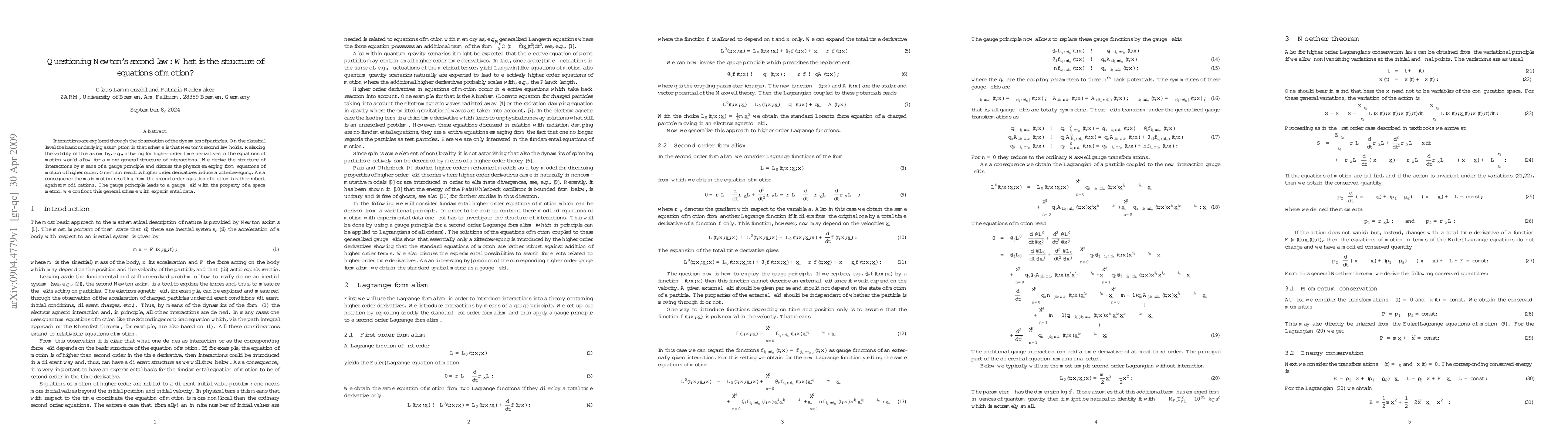 The research explores the structure of equations of motion by relaxing Newton's second law, allowing for higher-order time derivatives. A gauge principle is employed to derive the structure of interactions, leading to a gauge field with a space metric.