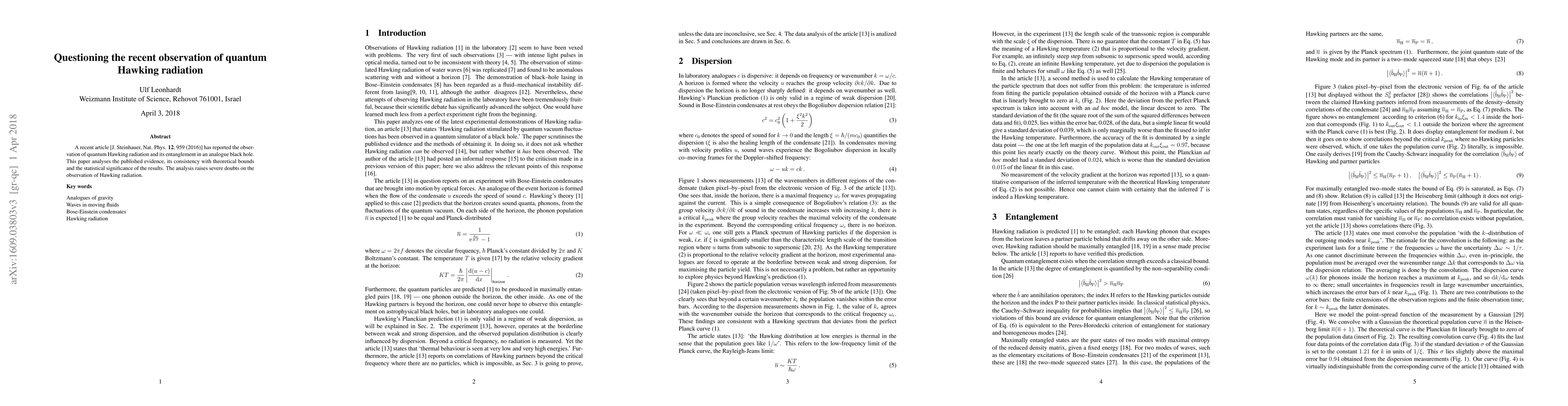 A recent article [J. Steinhauer, Nat. Phys. 12, 959 (2016)] has reported the observation of quantum Hawking radiation and its entanglement in an analogue black hole. This paper analyses the published evidence, its consistency with theoretical bounds and the statistical significance of the results. The analysis raises severe doubts on the observation of Hawking radiation.