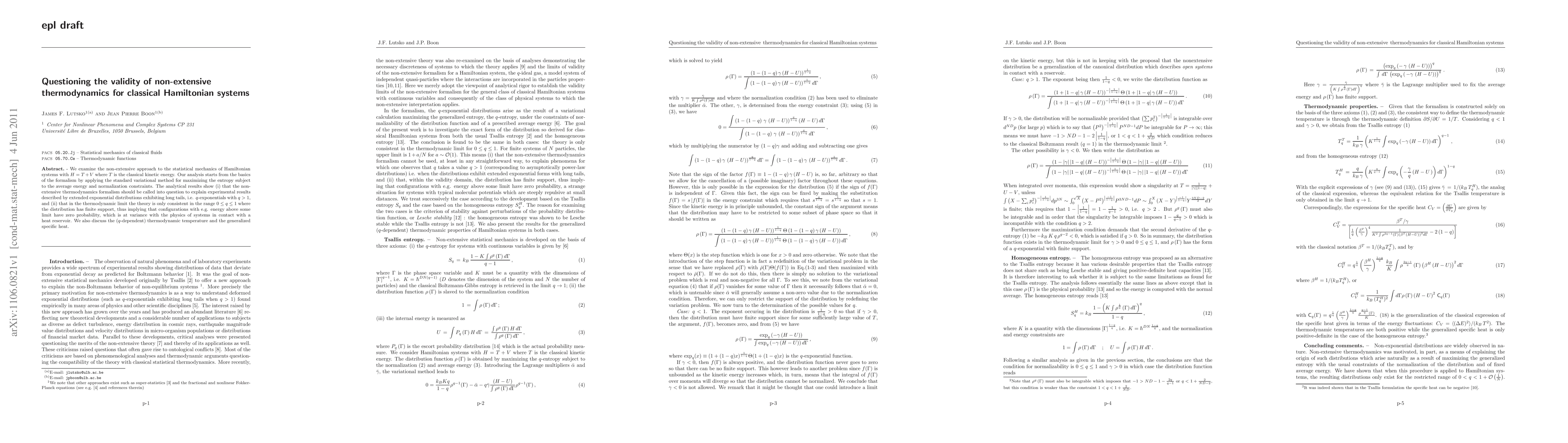 This paper scrutinizes the applicability of non-extensive thermodynamics to classical Hamiltonian systems, finding that the formalism is inconsistent for explaining extended exponential distributions with long tails and only valid for $0\leq q\leq1$, where it imposes unrealistic zero probabilities for high-energy configurations.