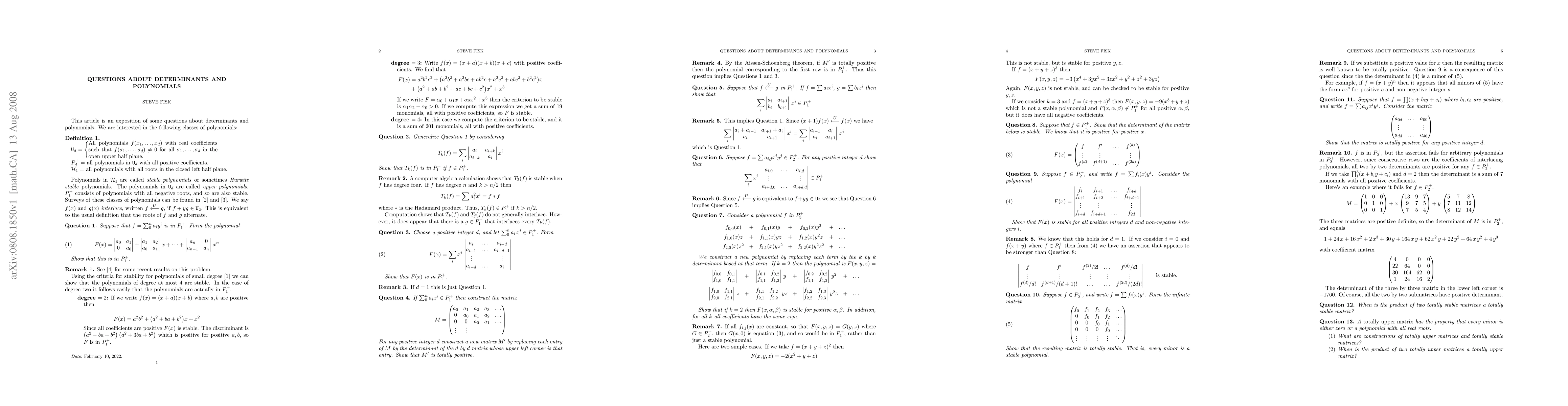 Summary: This paper explores conjectures regarding the real-rootedness of polynomials derived from determinants of coefficients of real-rooted polynomials, and investigates matrices that generalize totally positive matrices, including totally stable and totally upper matrices.